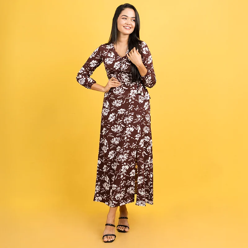 Perfect for daytime gatherings, casual dinners, or weekend getaways, this maxi dress offers unmatched versatility. Pair it with strappy sandals and subtle earrings for a daytime stroll, or elevate the look with block heels and a statement bag for a semi-formal evening affair. The timeless floral design ensures you’ll look effortlessly chic, no matter the setting.