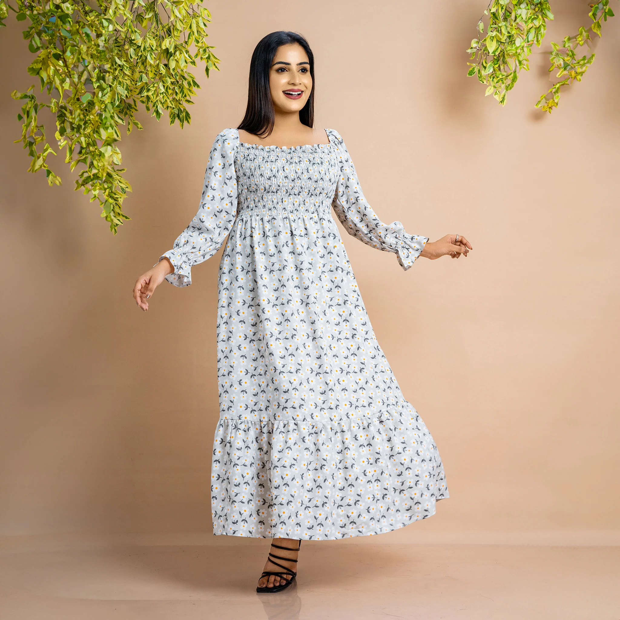 The Amelia Square-Neck Maxi Dress is your go-to for effortless elegance. Featuring a delicate floral print and a flattering square neckline, it combines comfort with style. The smocked bodice and tiered skirt create a beautiful silhouette, perfect for any occasion. Whether paired with sandals for a casual outing or dressed up with heels and statement earrings, this chiffon dress is versatile and chic. Available in sizes UK 8-18, it’s an essential addition to your spring and summer wardrobe. 🌸