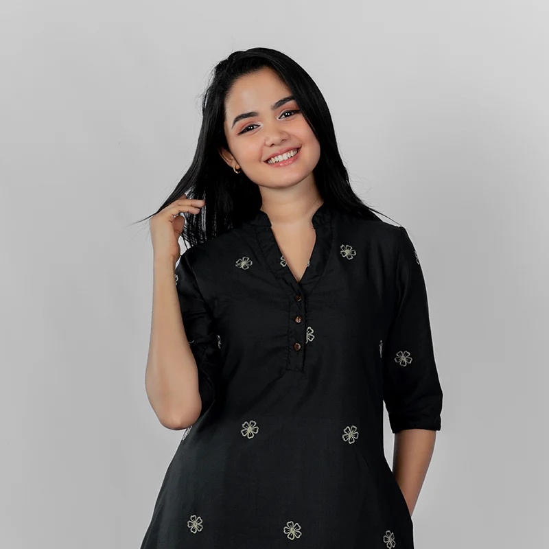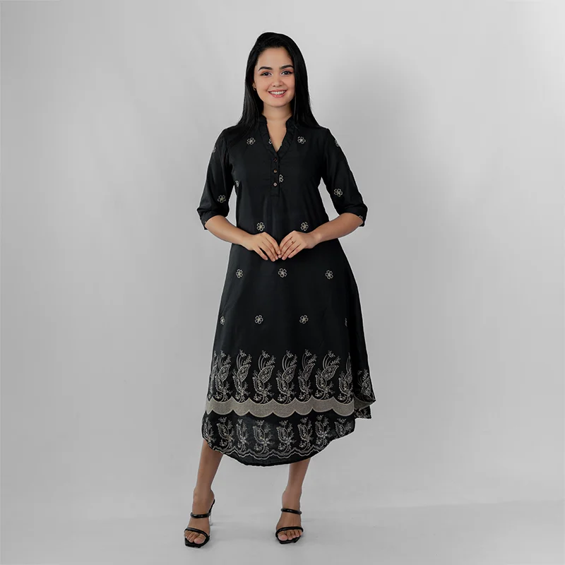 Made from soft and breathable cotton, this dress ensures lasting comfort and a naturally elegant drape. Its lightweight texture keeps you cool throughout the day while maintaining structure and grace with every movement.