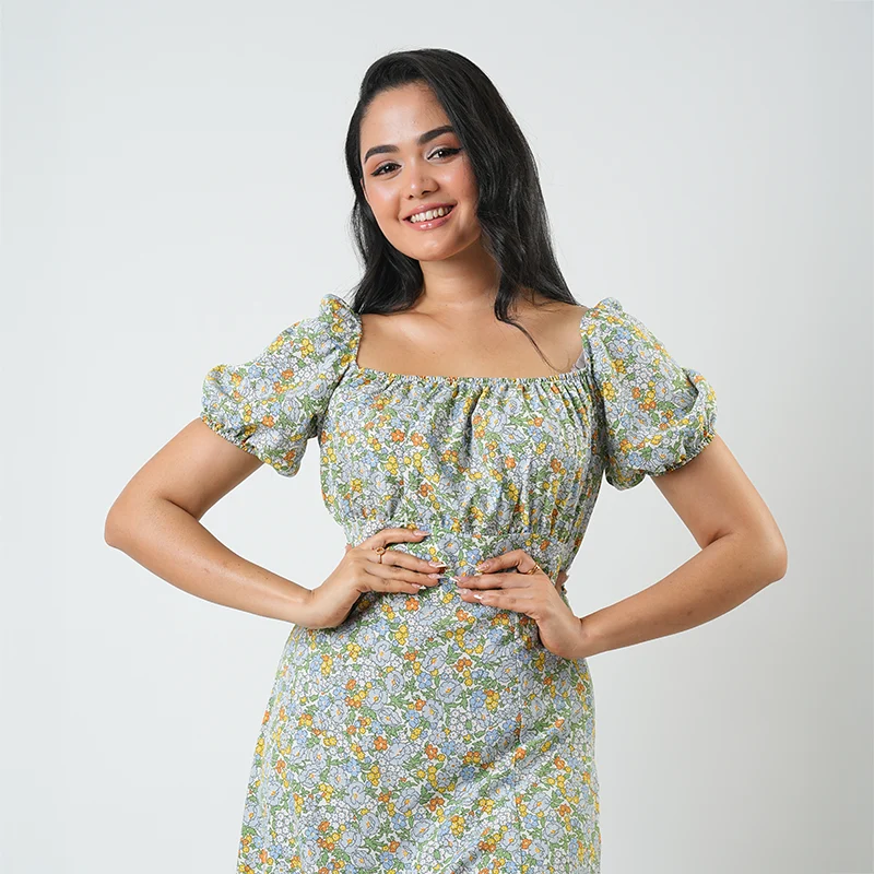Ideal for garden parties, brunch outings, or evening strolls, this dress captures a mood of relaxed elegance. Pair with dainty jewelry and block heels for a polished look, or opt for sandals and a sunhat for a breezy, effortless vibe.