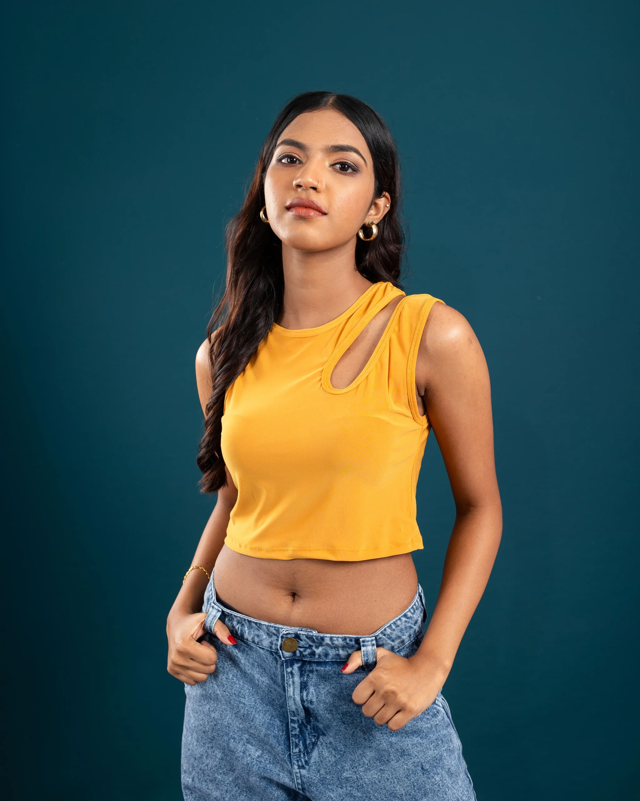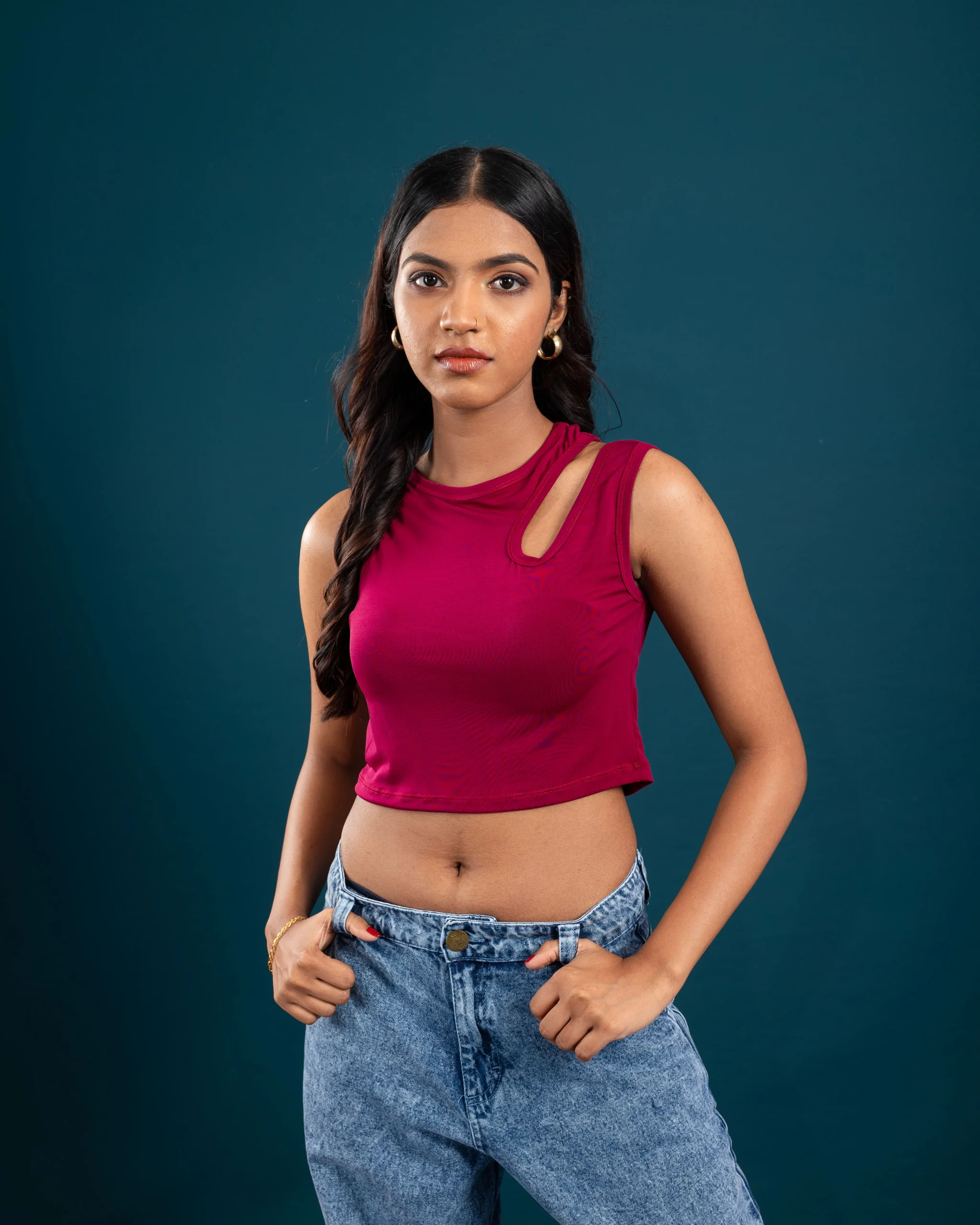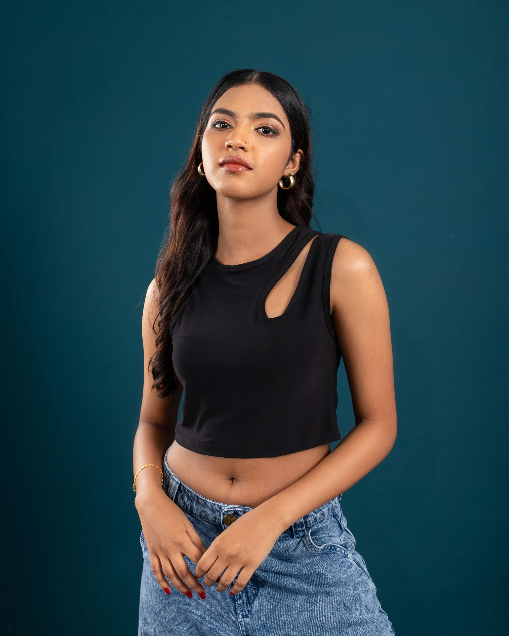 The Chic Cutout Crop is a perfect blend of modern design and casual elegance. With its unique asymmetric cut-out detail, this sleeveless crop top stands out in any wardrobe. Made from stretchable knit fabric, it offers softness, breathability, and flexibility. Ideal for warm days or layering, it pairs effortlessly with high-waisted jeans or skirts for a chic look. Available in sizes UK 8-16, this versatile top is a must-have for any fashion-forward individual. 🌟