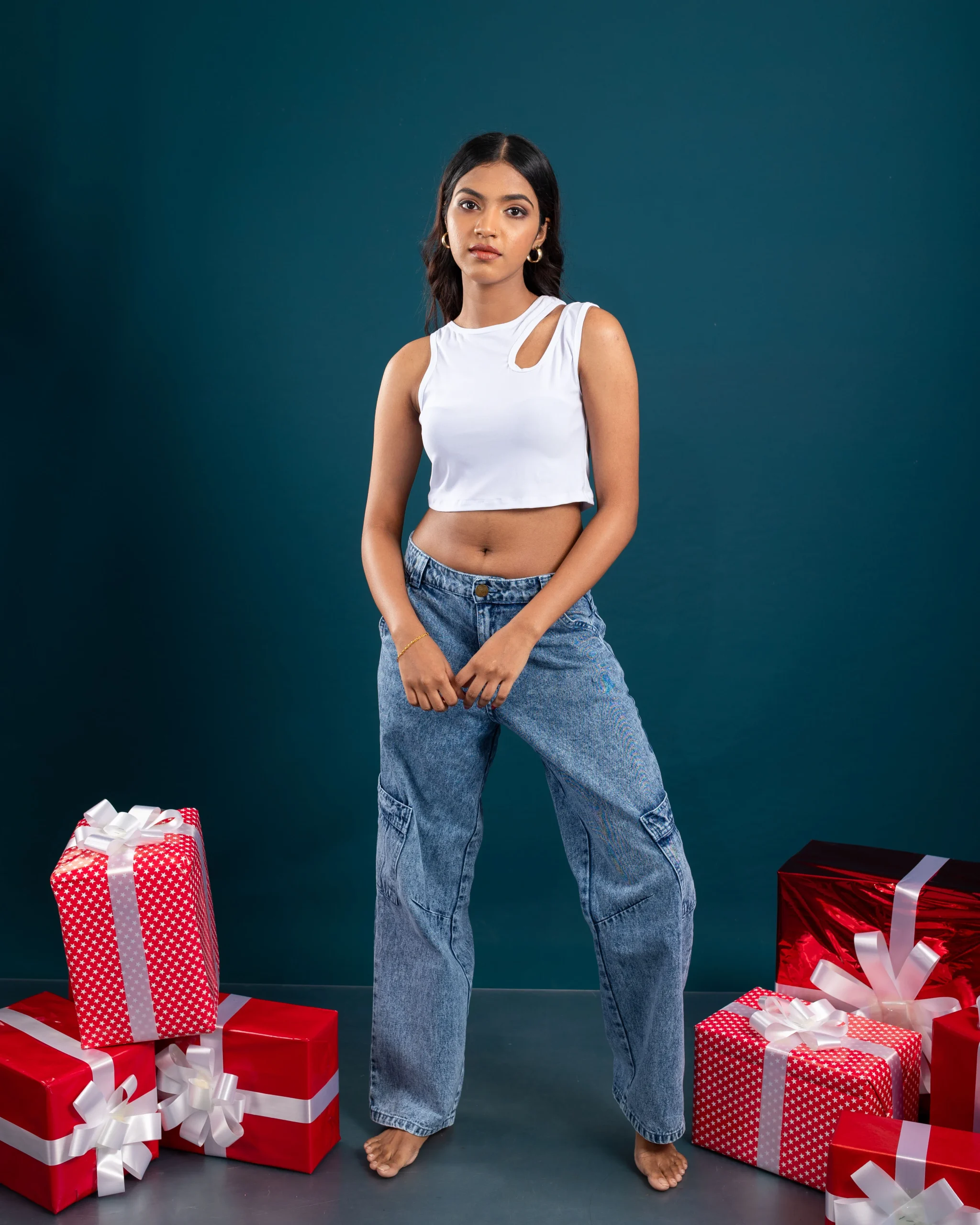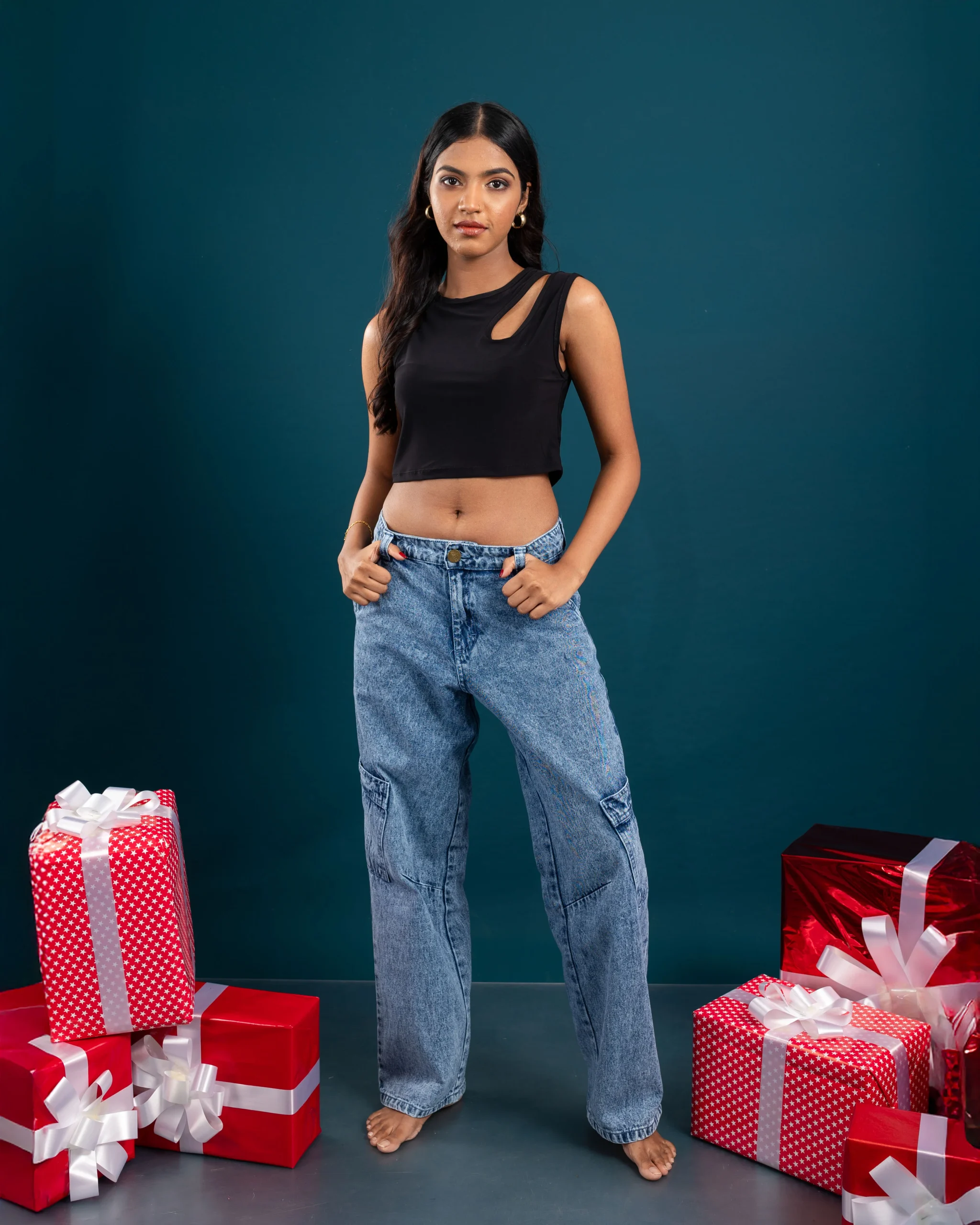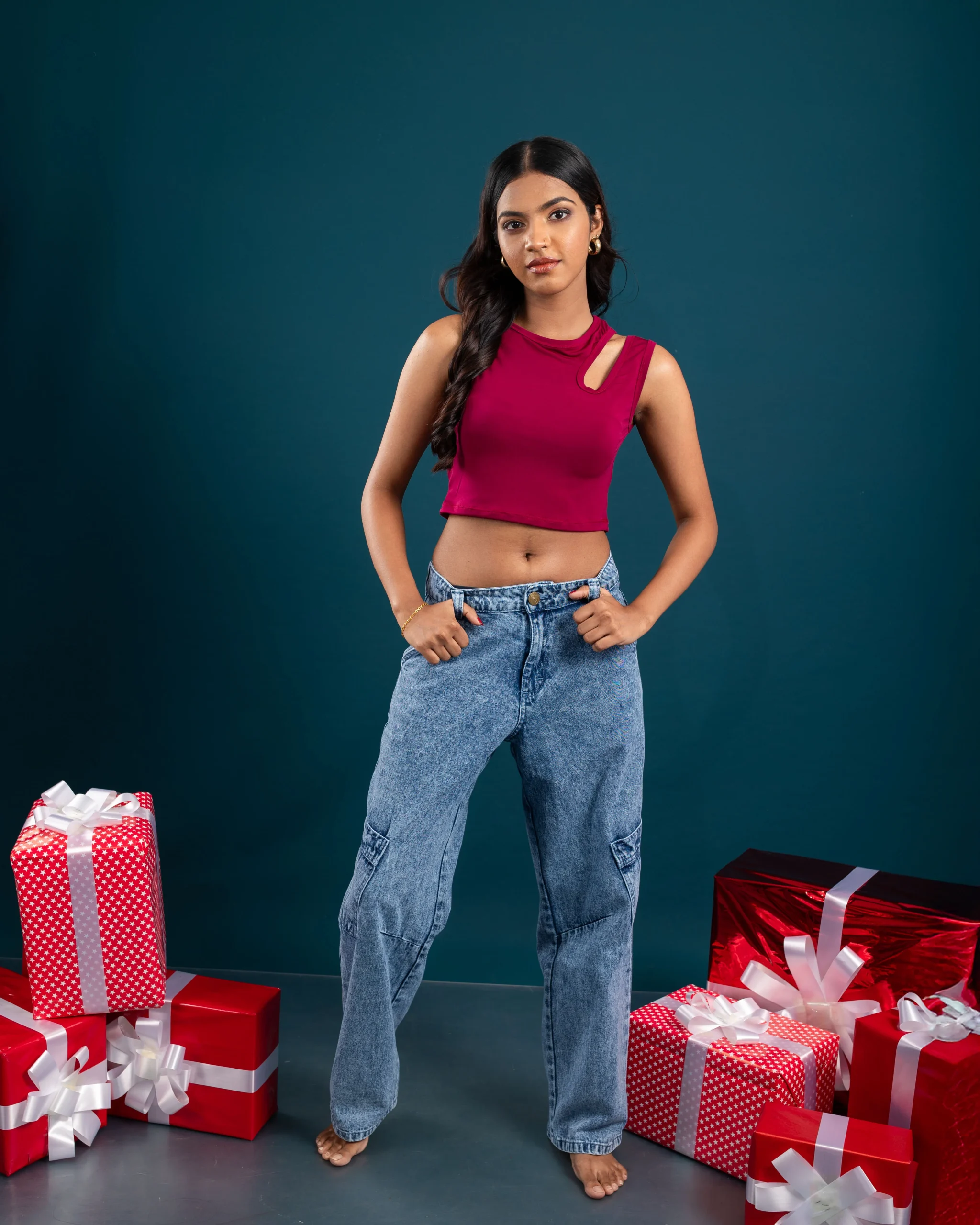 The Chic Cutout Crop is a perfect blend of modern design and casual elegance. With its unique asymmetric cut-out detail, this sleeveless crop top stands out in any wardrobe. Made from stretchable knit fabric, it offers softness, breathability, and flexibility. Ideal for warm days or layering, it pairs effortlessly with high-waisted jeans or skirts for a chic look. Available in sizes UK 8-16, this versatile top is a must-have for any fashion-forward individual. 🌟