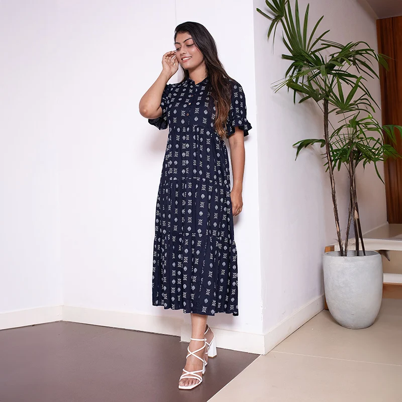 The Cindy Midi Dress features a charming teal base with delicate white floral patterns, short sleeves, and a classic collar. Its button-down front adds sophistication, making it perfect for both casual outings and formal events. Crafted from breezy Revon viscose, it ensures comfort and ease of movement. Pair it with white sneakers and a denim jacket for daytime, or strappy heels and a clutch for evening elegance. Ideal for brunches, garden parties, or smart office wear, this dress blends comfort with style effortlessly.