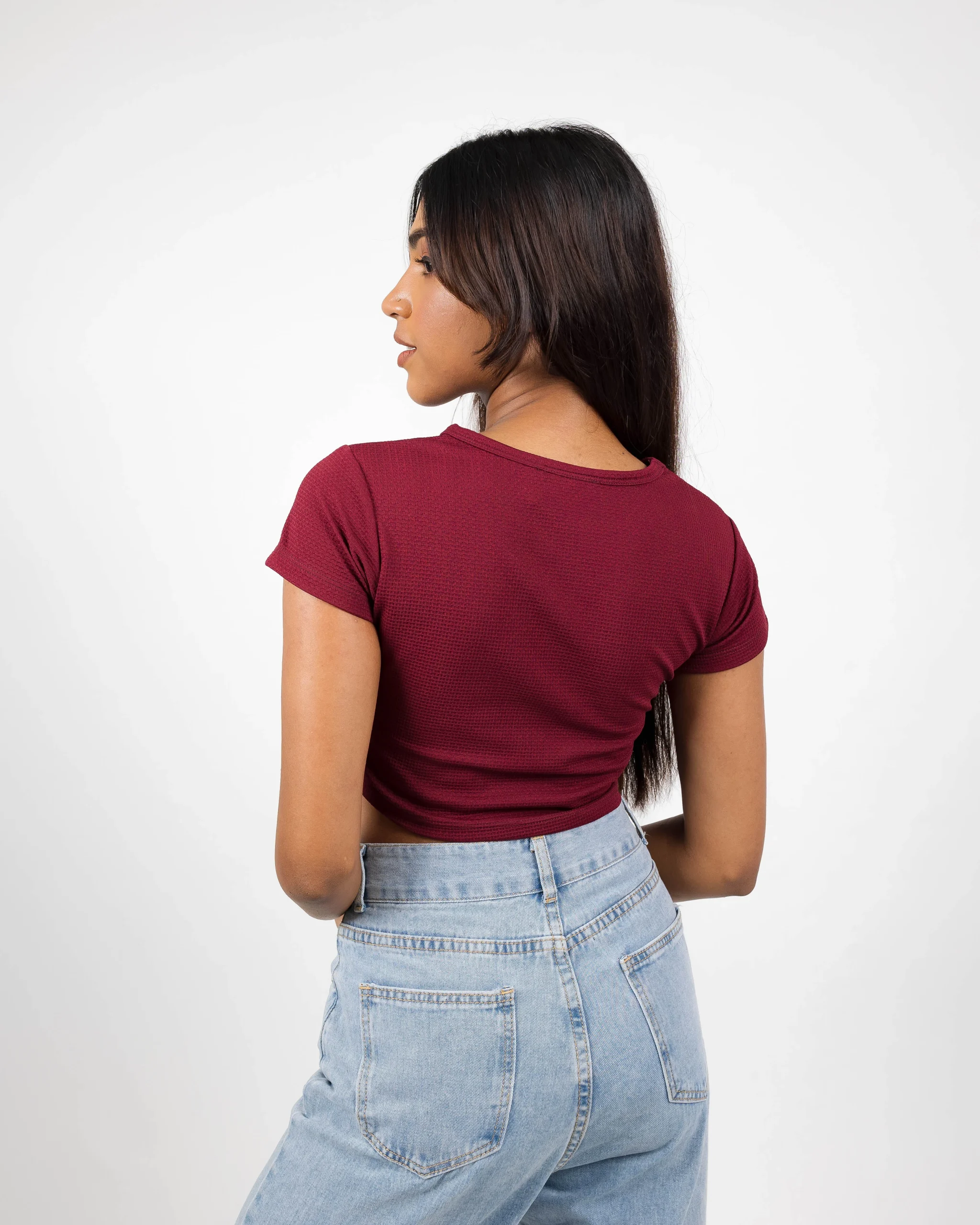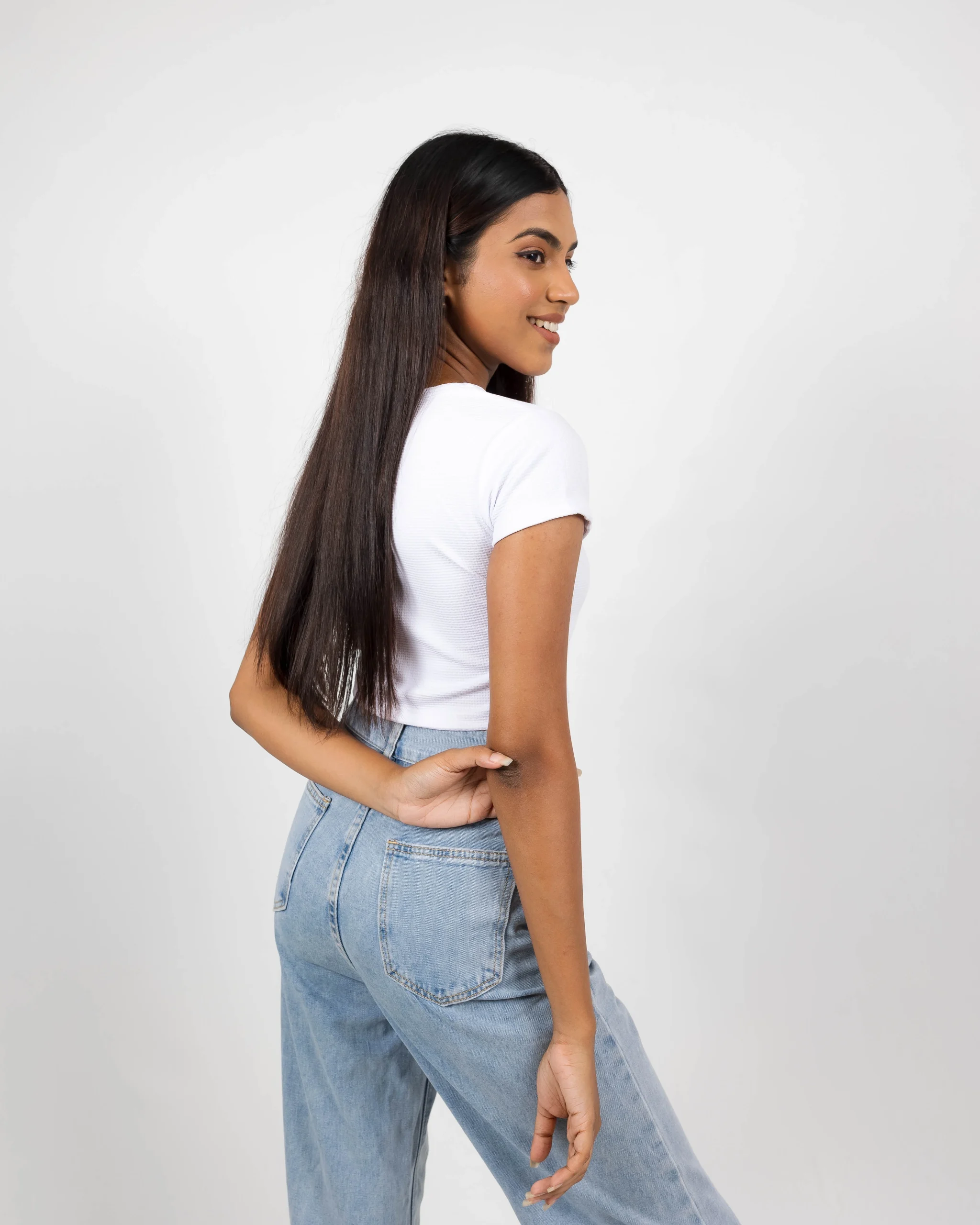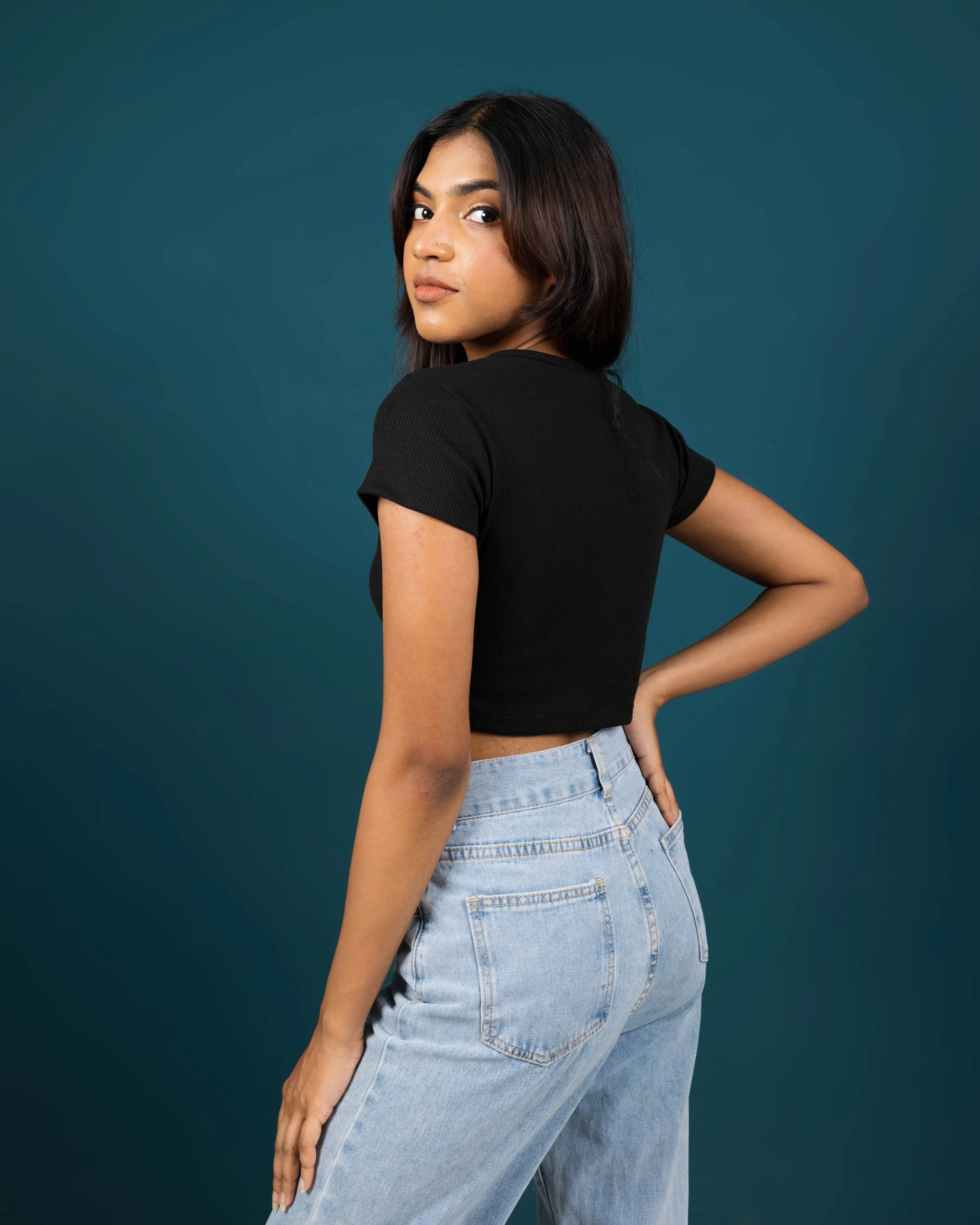 This stylish ribbed crop top combines comfort and elegance effortlessly. With its fitted design and soft, stretchable knit fabric, it’s perfect for all-day wear while flattering your figure. Whether paired with high-waisted jeans for a casual outing or dressed up with accessories for a night out, this versatile piece transitions seamlessly between occasions. Its minimalistic short sleeves and timeless charm make it a wardrobe essential, ideal for creating chic, everyday looks with ease. Stay trendy, comfortable, and confident all day!