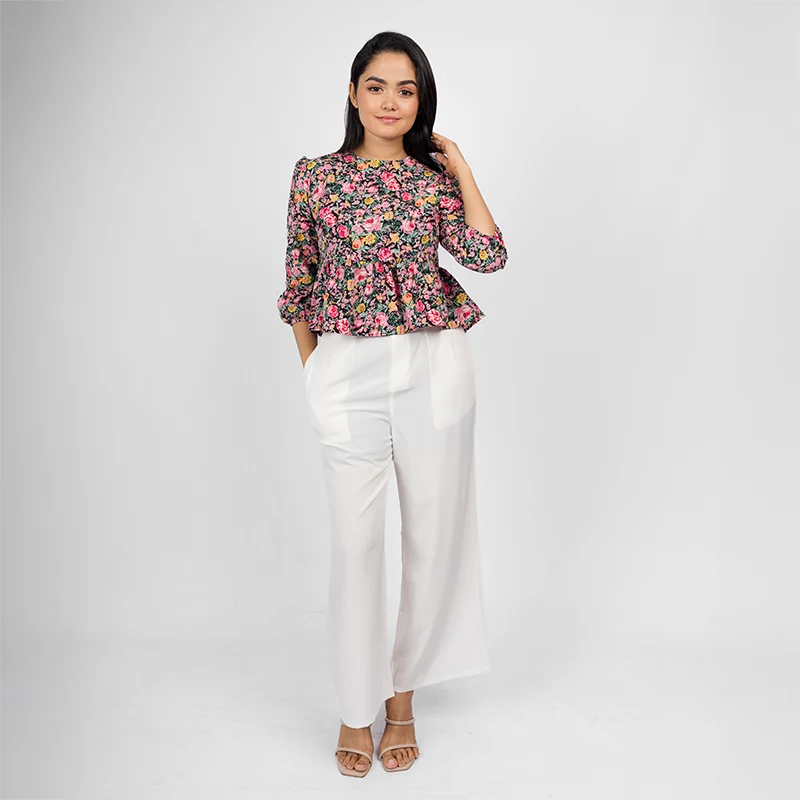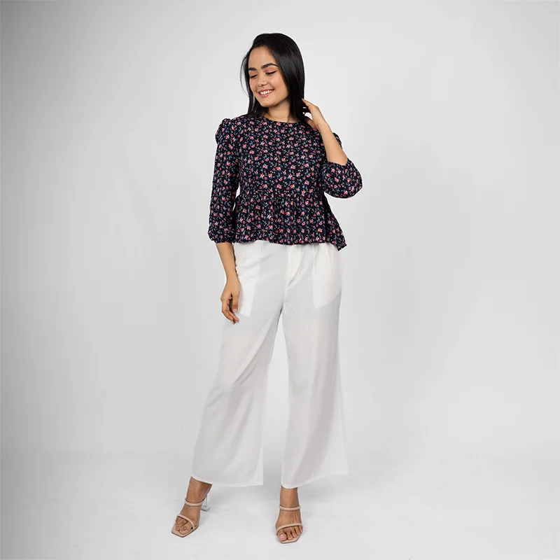 Perfect for brunches, office wear, or evening outings, this blouse pairs beautifully with high-waisted trousers, skirts, or jeans. Style with delicate jewelry and your favorite heels for a chic, feminine finish.