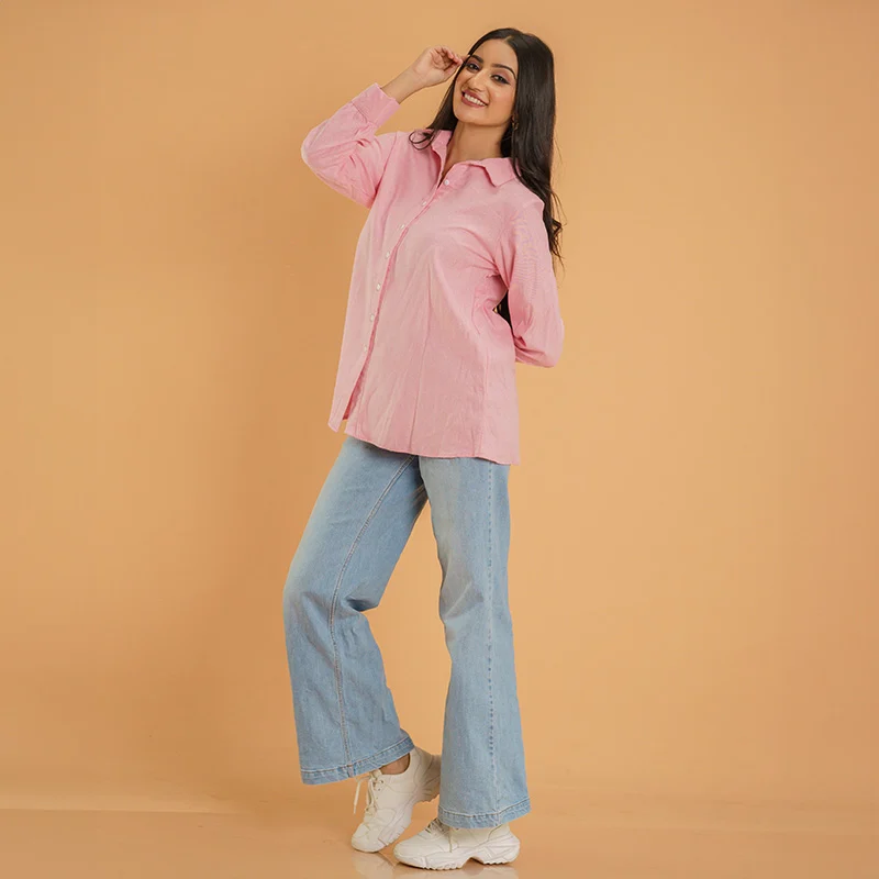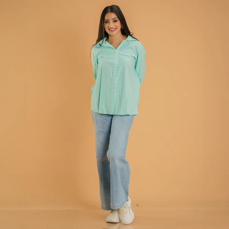 This stylish ensemble combines a relaxed-fit, button-down linen shirt with light-wash, straight-leg jeans for a chic blend of comfort and effortless elegance. The breathable linen fabric offers a lightweight feel, perfect for warm days, while the retro-inspired jeans add a trendy touch. Ideal for casual outings, brunches, or a laid-back workday, this outfit can be dressed up or down. Pair with white sneakers and a tote for daytime or elevate it with heeled sandals and statement jewelry for the evening.