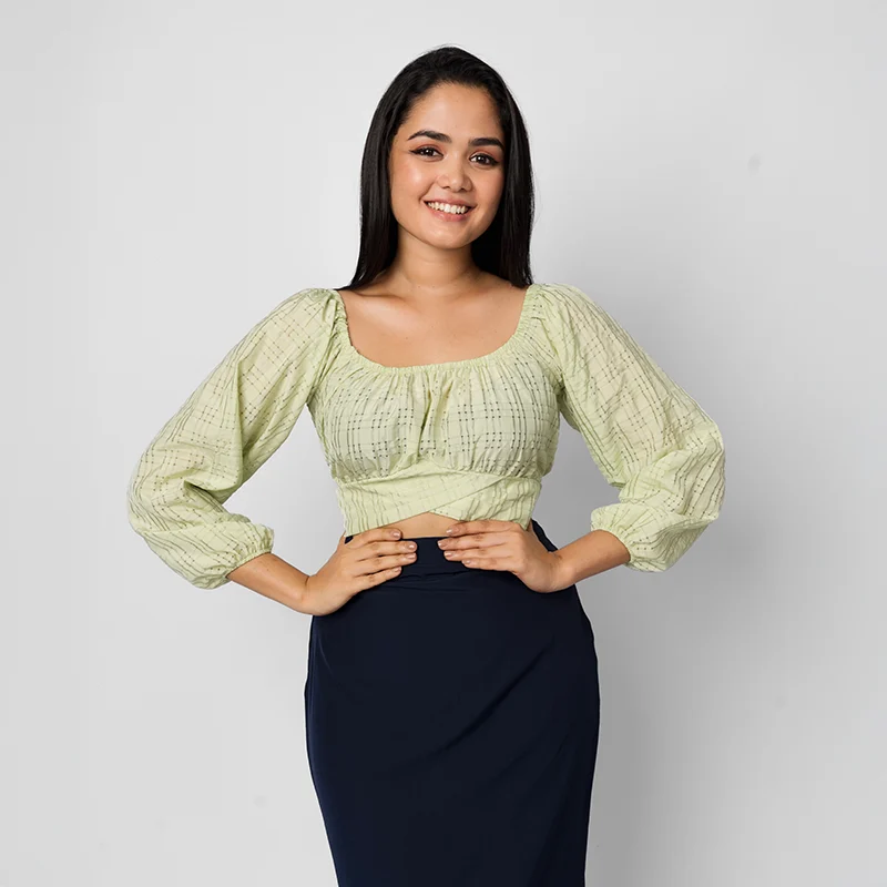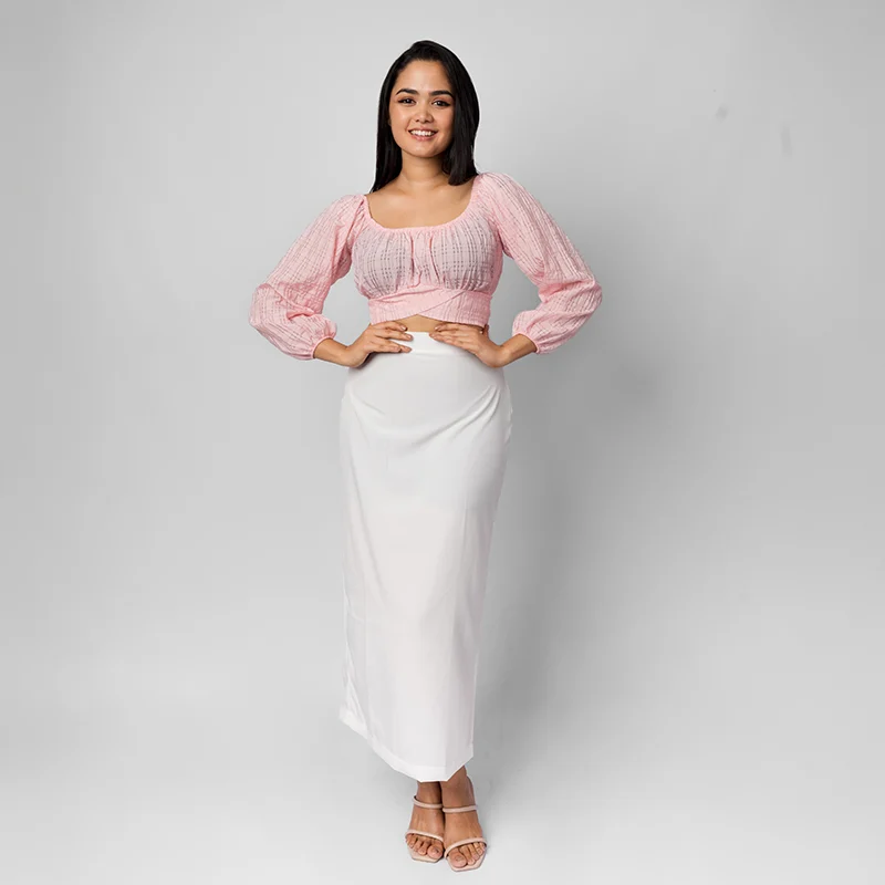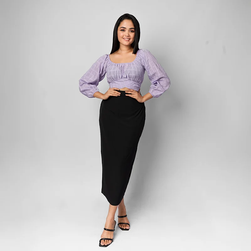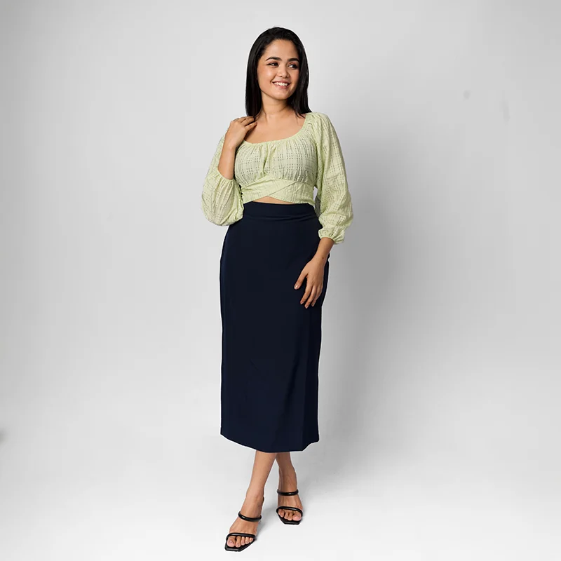 Tailored from breathable cotton flex, this set combines comfort with structure. The blouse’s gentle texture ensures ease of wear, while the skirt’s clean drape enhances movement and sophistication. Crafted for both style and comfort, it’s a set designed to feel as good as it looks.
