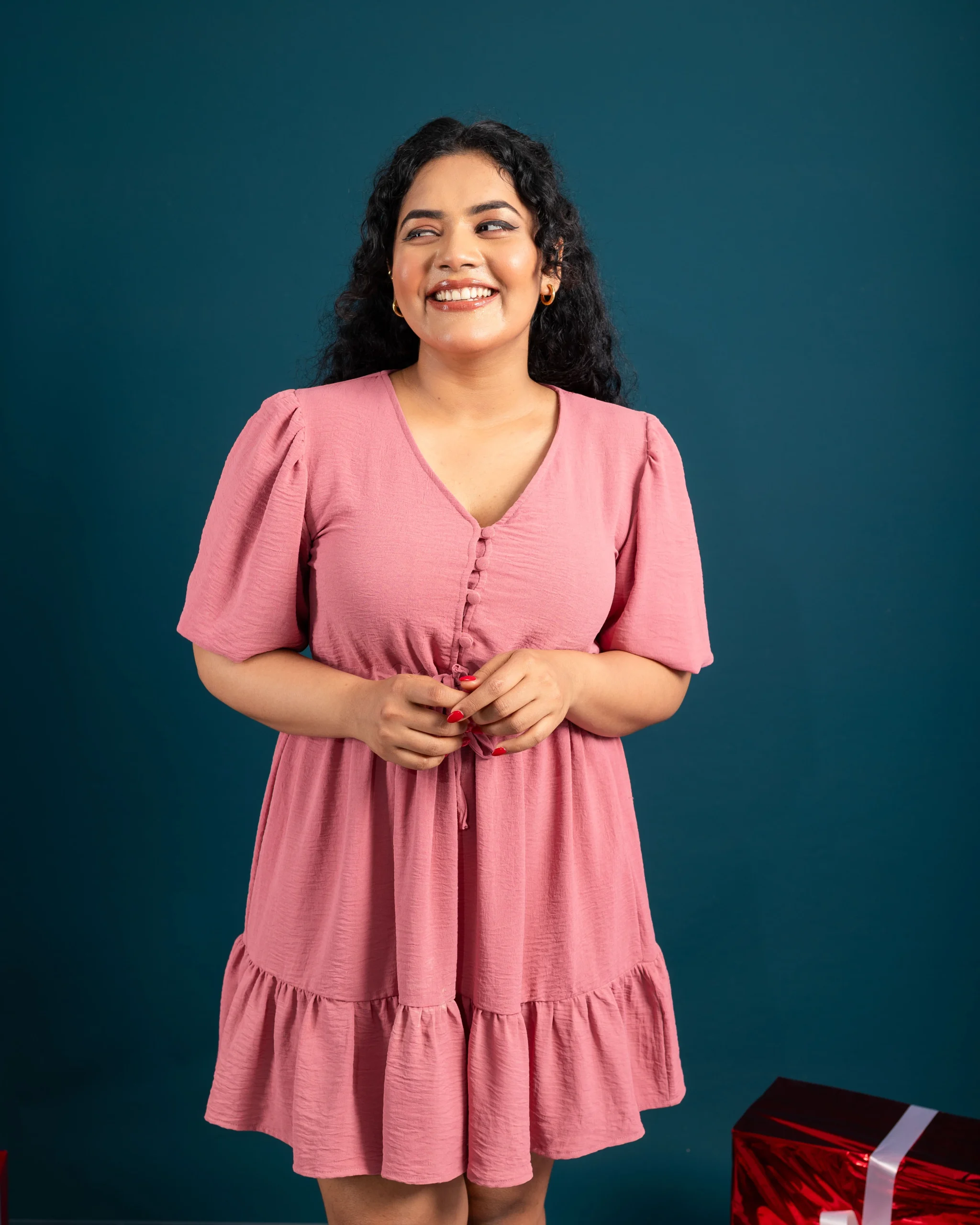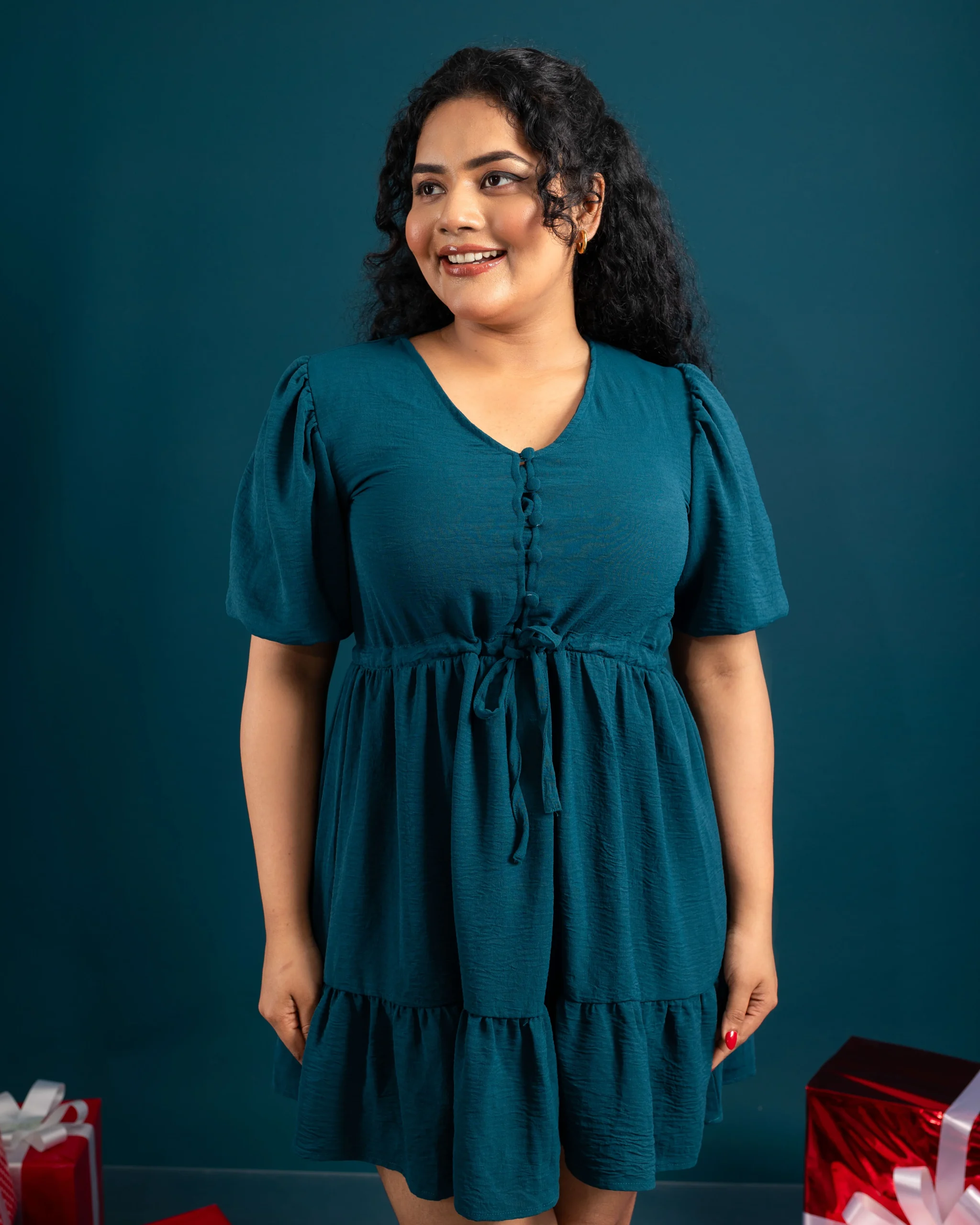 Introducing the Festive Elegance Flare Dress, your perfect companion for any occasion. This A-line dress with a ruffled hem, puff sleeves, and buttoned front brings a vintage-inspired charm. The tie-up waist highlights your curves, while the soft, lightweight Maza fabric ensures comfort all day. Pair with heels or flats and accessorize with statement jewelry for a stylish, effortless look. Available in sizes UK 8-16/S-2XL. Model wears UK 10 (M) and is 5’4″ tall.