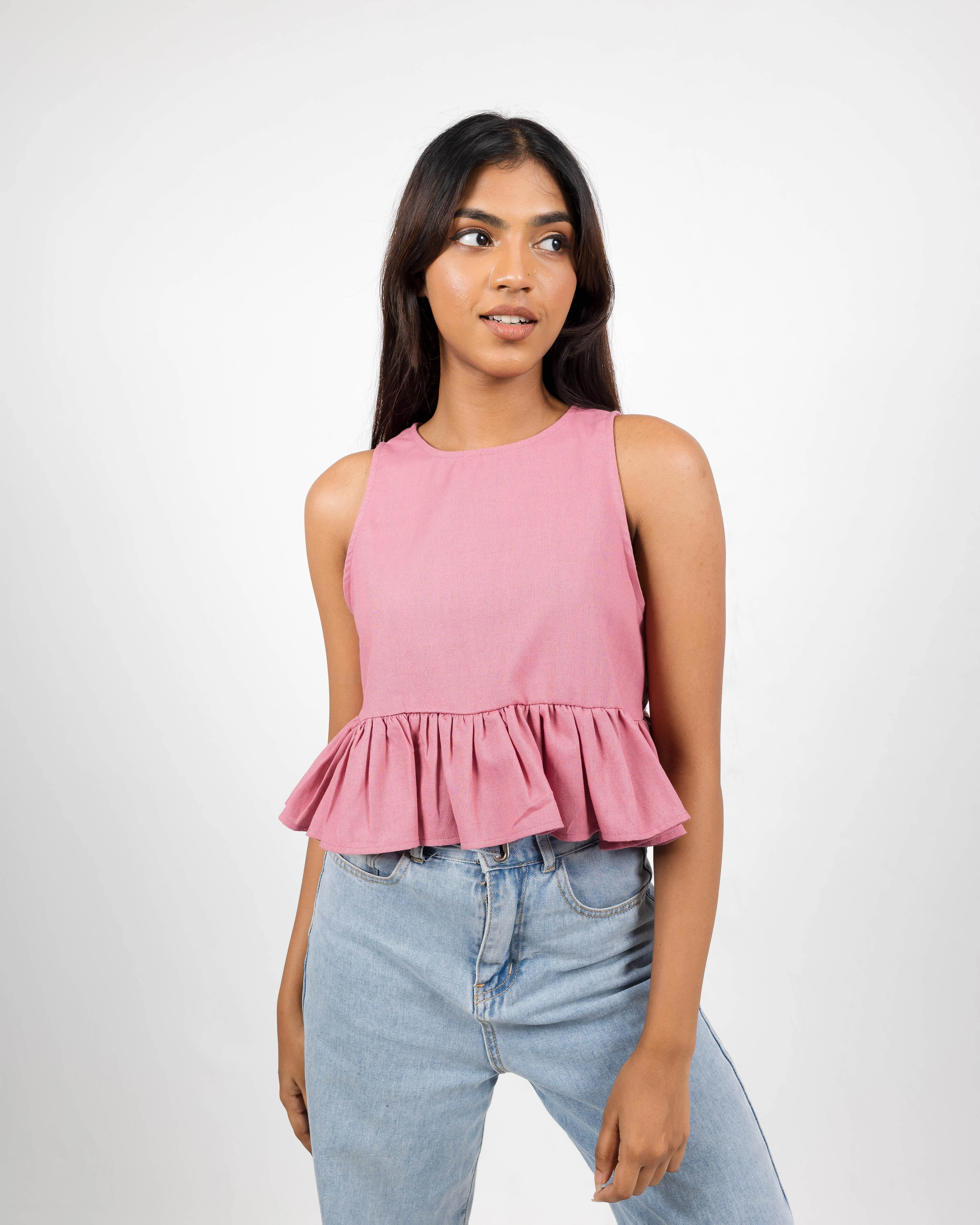 This sleeveless peplum top blends effortless charm with modern sophistication. Featuring a flattering round neckline and a relaxed silhouette, it offers all-day comfort while enhancing your style. Crafted from breathable, lightweight linen, it drapes beautifully, with a playful peplum flare adding a feminine touch. Perfect for any occasion, pair it with jeans for a casual day out or tailored trousers for an elevated look. Versatile and chic, this top is a must-have addition to your wardrobe for warm-weather elegance.