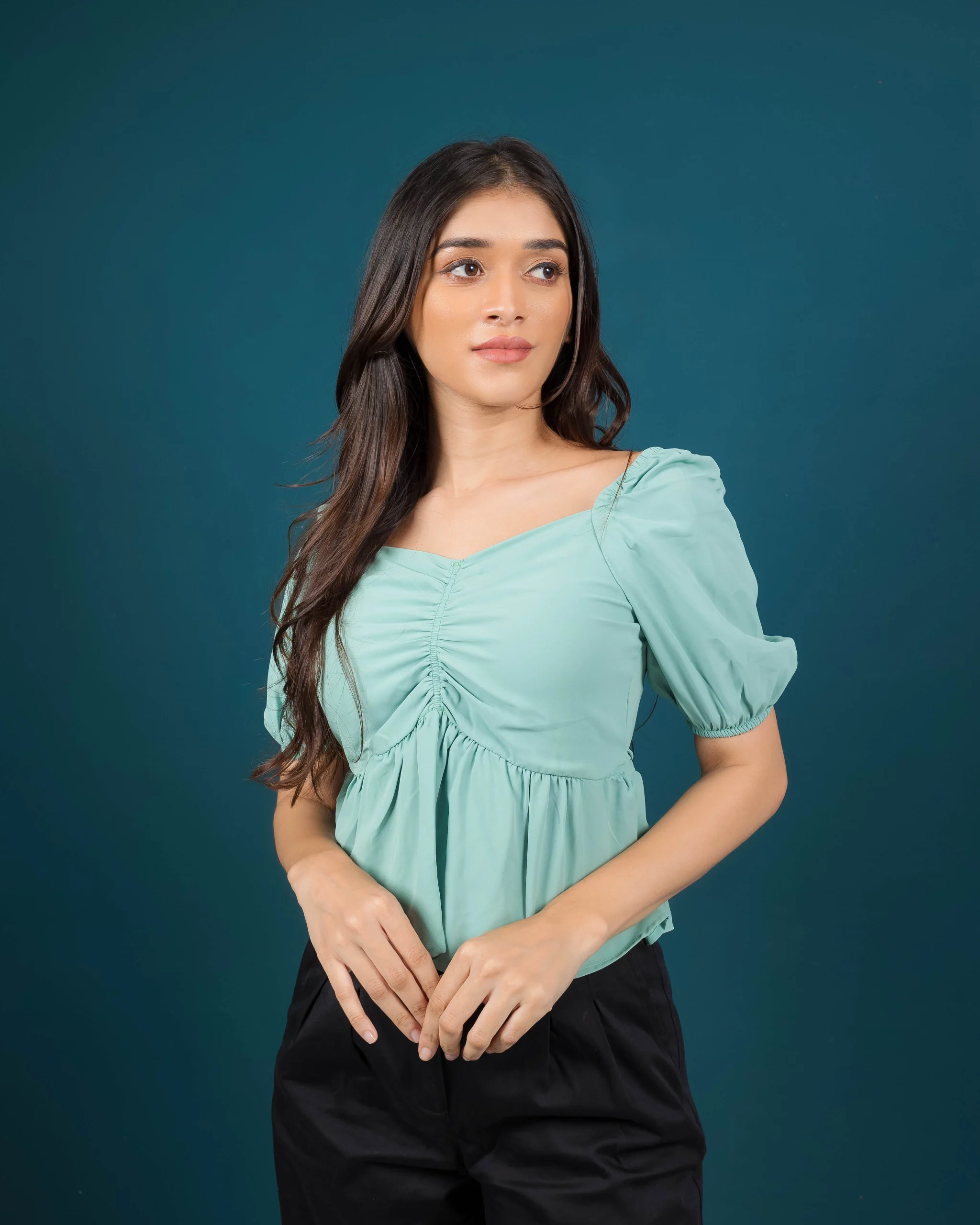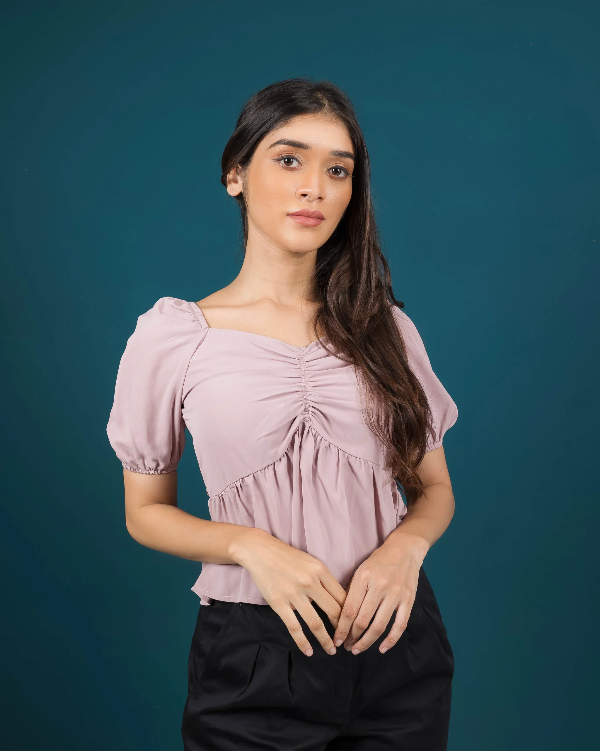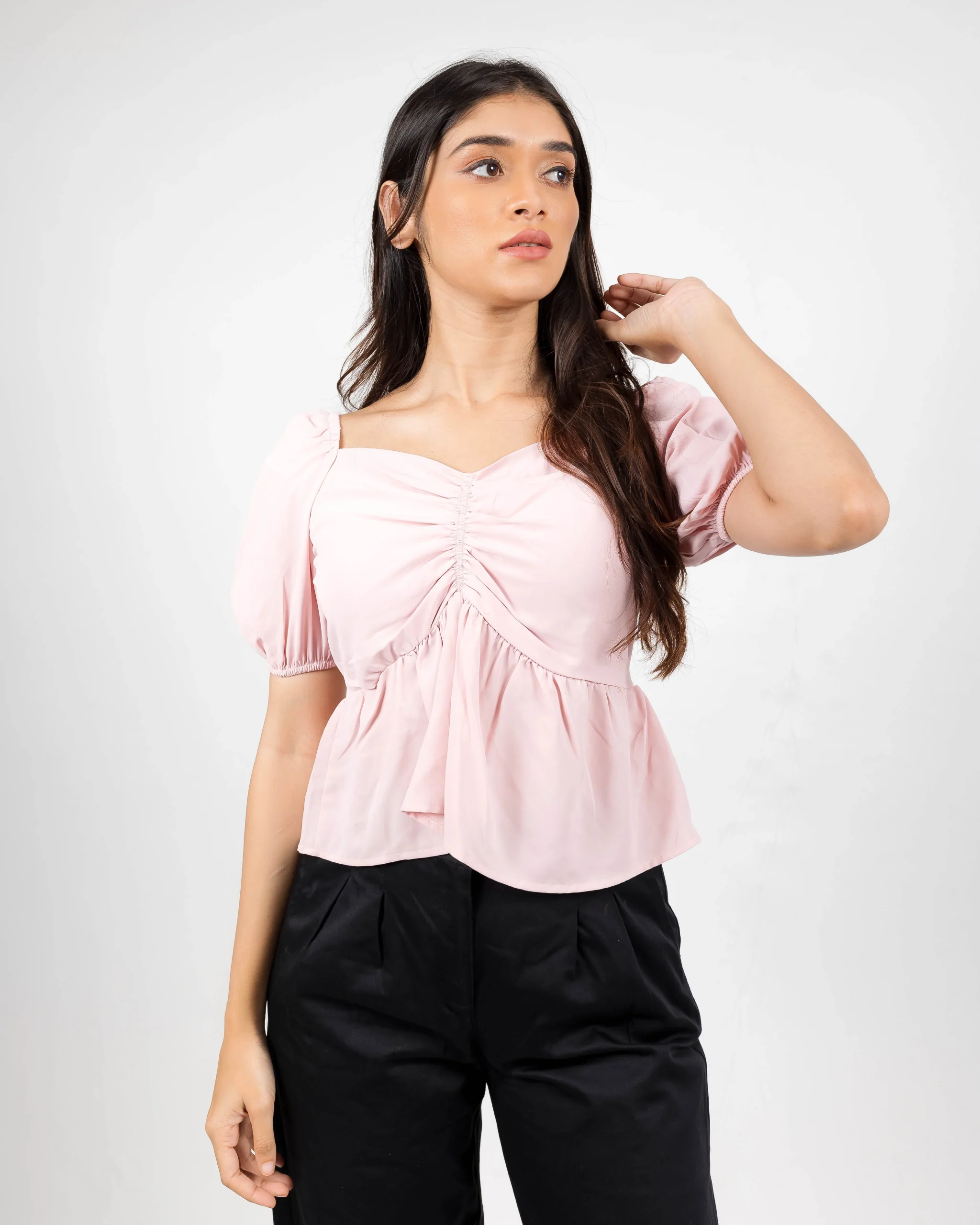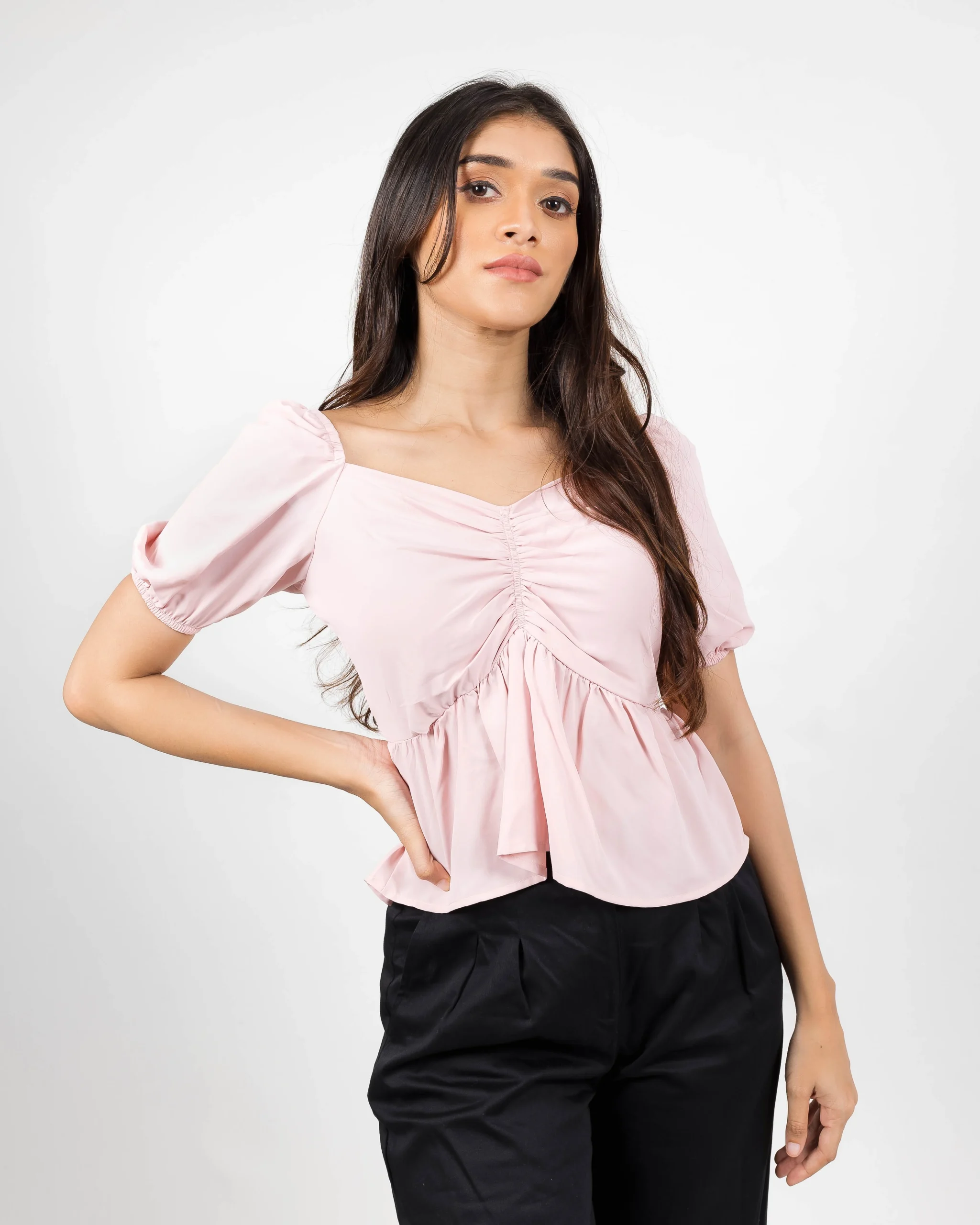 The Gathered Elegance Peplum Top is a perfect blend of charm and comfort, ideal for versatile styling. Featuring a flattering square neckline with ruched detailing, puffed sleeves, and a cinched waistline that flows into a feminine peplum, this top exudes timeless romance. The tie-up back adds a playful yet sophisticated touch. Made from breathable Maza fabric, it’s perfect for any occasion—pair it with tailored trousers or skirts to effortlessly transition from chic daytime outings to polished evening events.