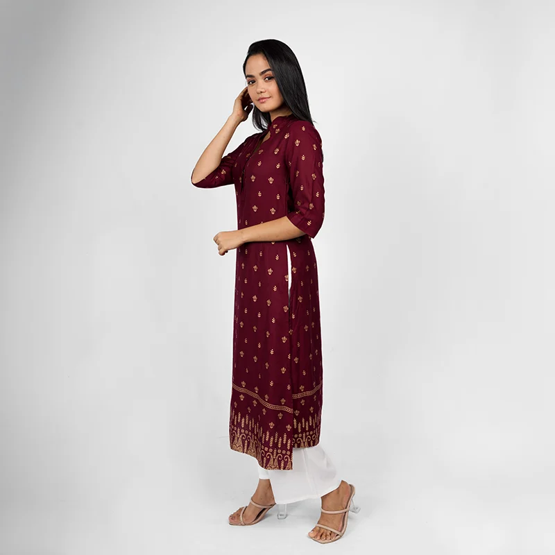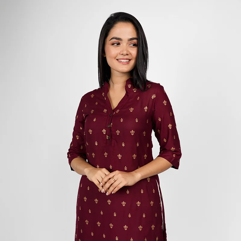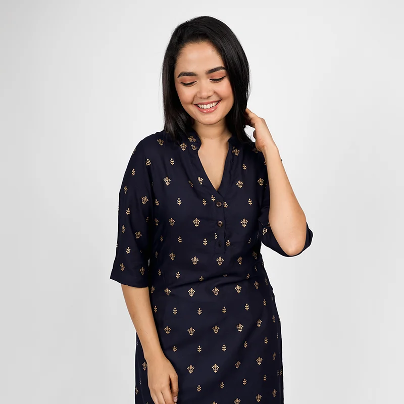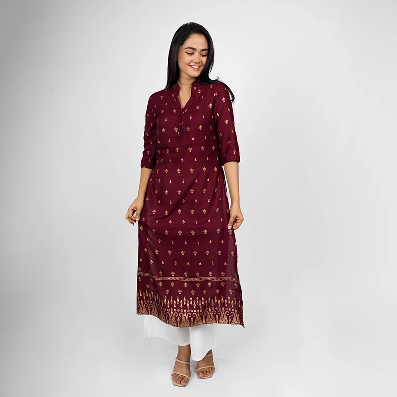 Crafted from premium revon fabric, this tunic is lightweight with a smooth finish, ensuring comfort and a graceful drape. Its durable weave maintains its shape and elegance, even with regular wear.