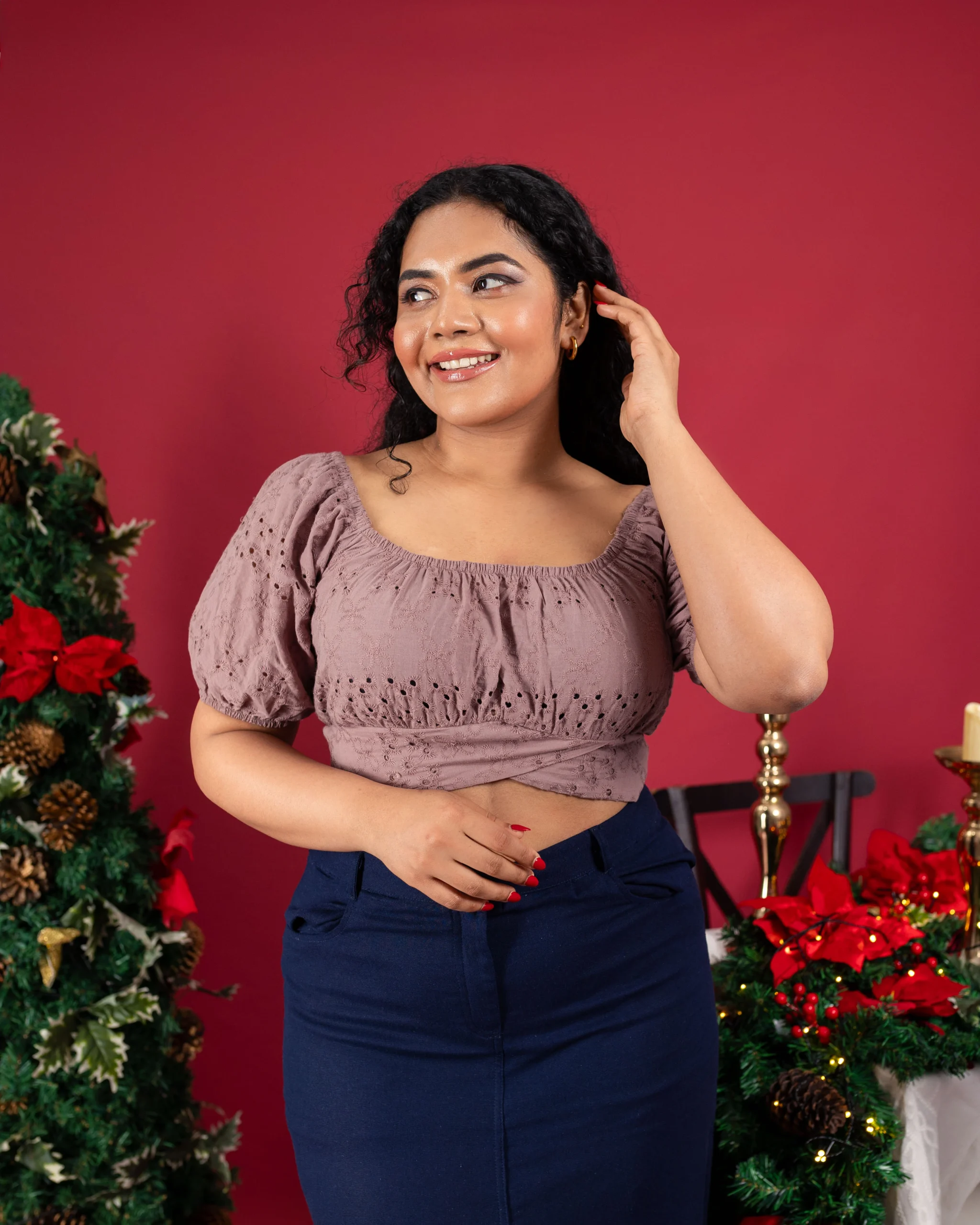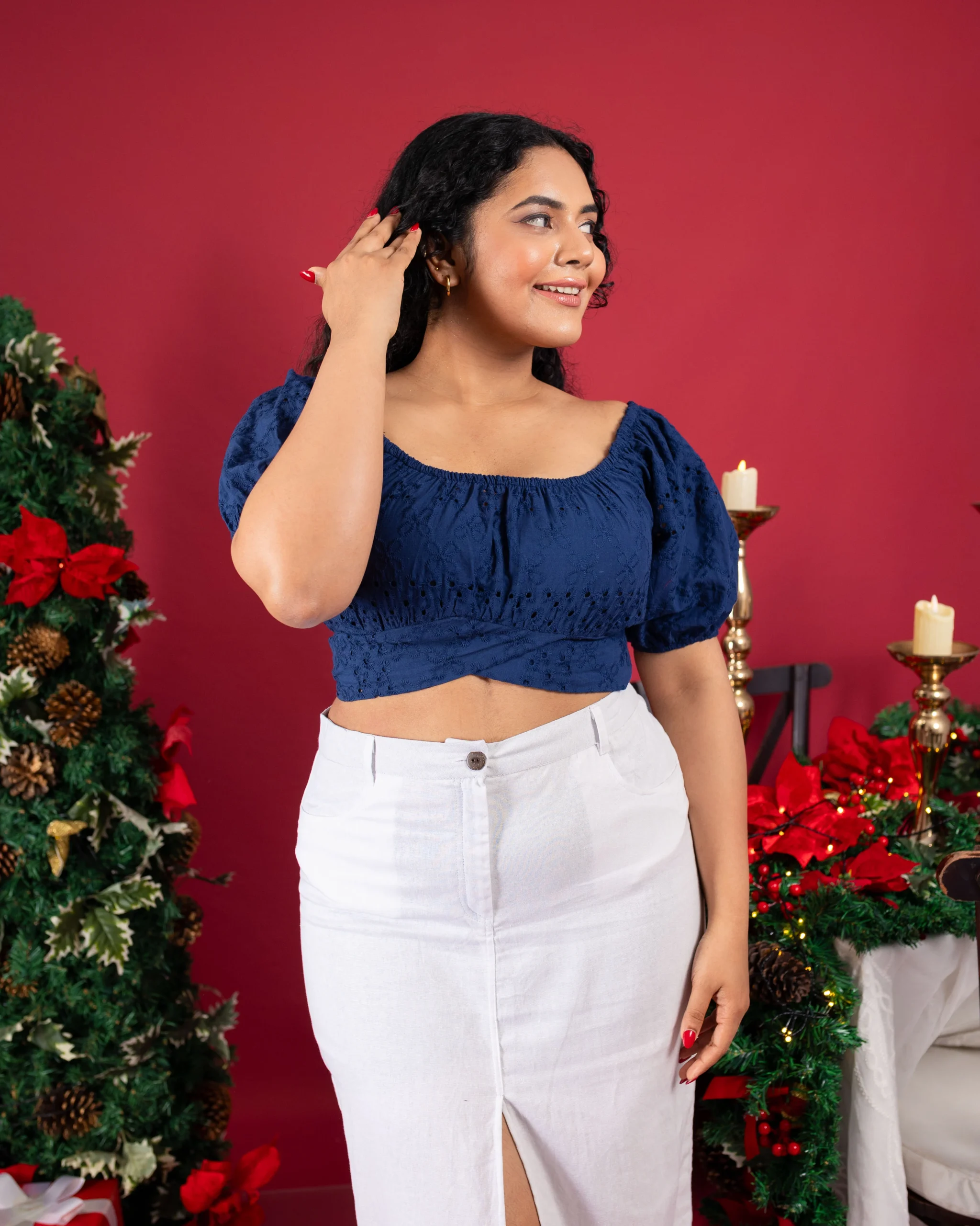 Introducing the Graceful Glam Set, an elegant ensemble featuring a detailed cropped top and a high-waisted skirt with a front slit. This outfit beautifully highlights your figure while maintaining a classy aesthetic. Crafted from breathable linen, it’s perfect for all-day wear during festive gatherings, dinner parties, or semi-formal events. Pair with strappy heels, a statement clutch, and delicate jewelry for an effortlessly glamorous touch. Available in sizes UK 8-16/S-2XL. Model wears UK 10 (M) and is 5’4″ tall.