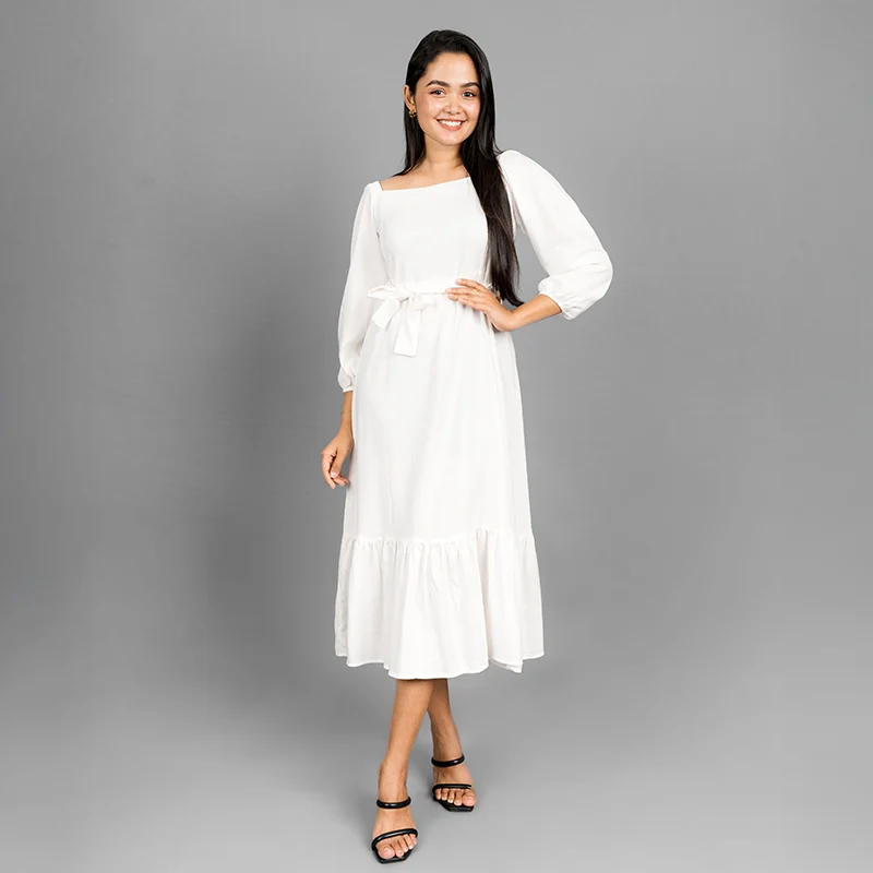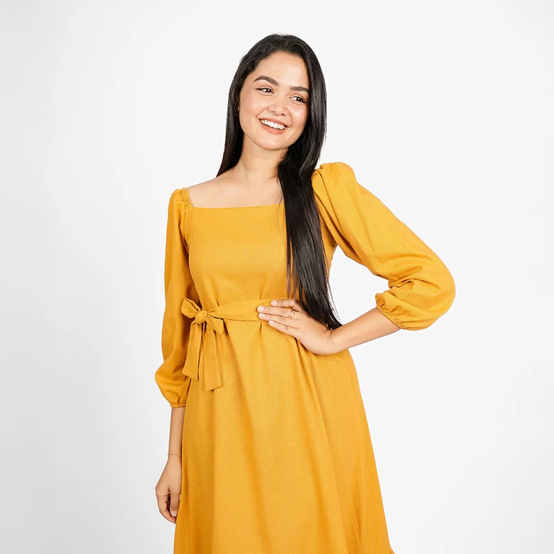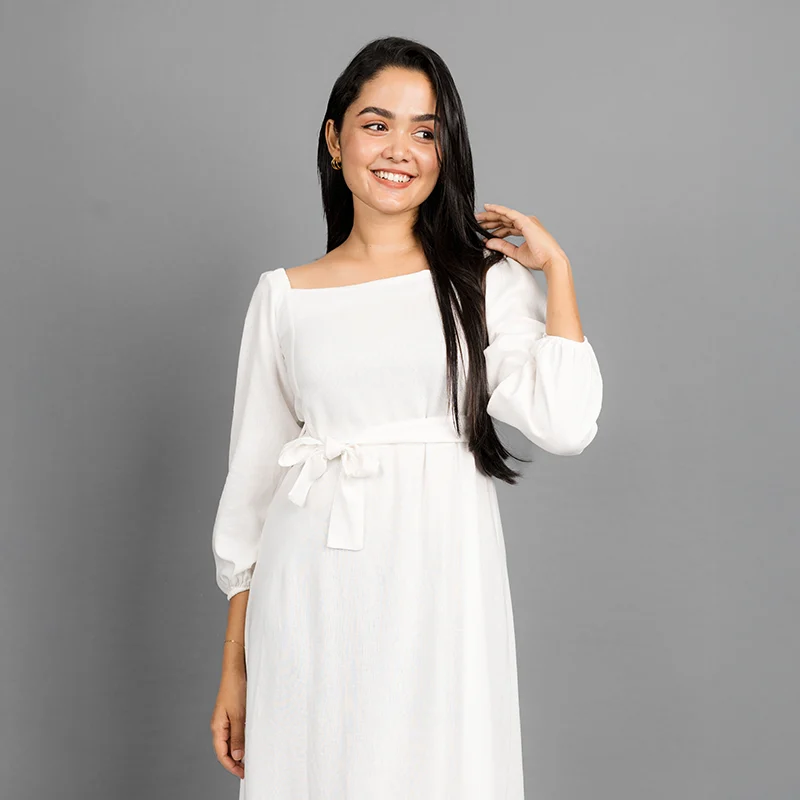 Care Instructions:To maintain the pristine quality of the linen fabric, hand wash or machine wash on a gentle cycle with mild detergent. Avoid bleach and opt for air drying to preserve its softness. If necessary, iron on low heat to remove wrinkles, keeping your dress fresh and elegant for every occasion.