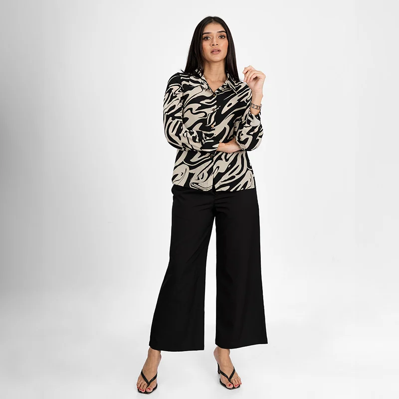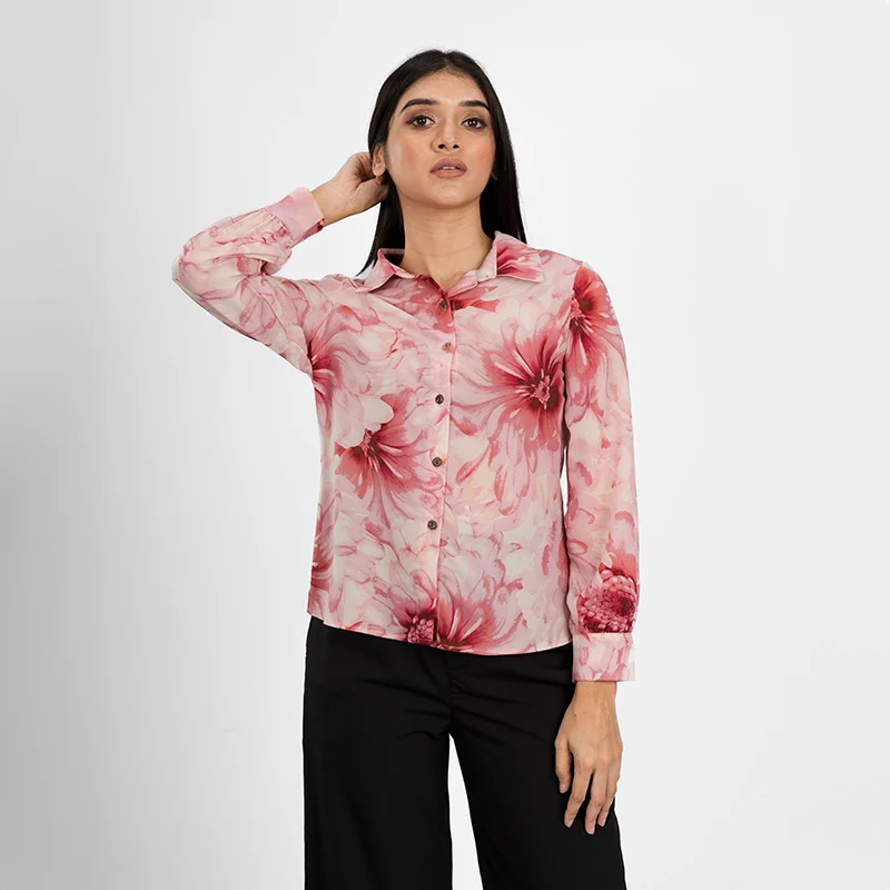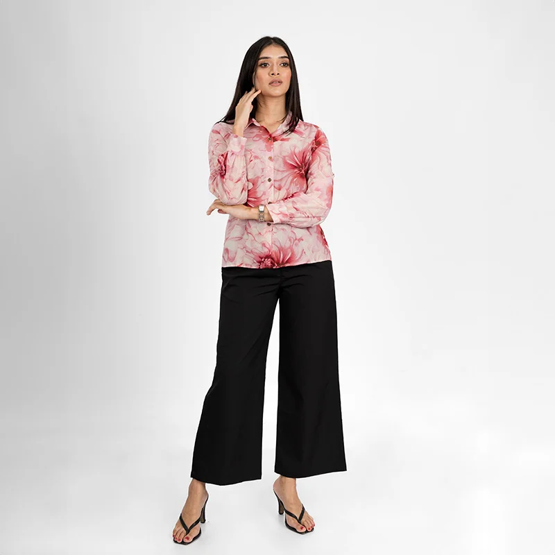 Timeless and versatile, this blouse features a structured button-up design with a classic collar, offering a polished yet effortless look. The long sleeves with buttoned cuffs add a refined touch, while the relaxed fit drapes beautifully, ensuring both comfort and sophistication. Subtle pleats enhance the silhouette, making it a wardrobe essential for any occasion.