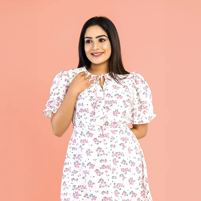 The Lavender Mini Dress blends playful elegance with everyday comfort, making it a must-have for warm-weather outings. Featuring a delicate floral print, round neckline with keyhole detail, and charming puffed sleeves, this dress flatters all body types with its soft, lightweight chiffon fabric. Perfect for brunches, casual outings, or date nights, it’s easy to style for any occasion. Pair with sandals and a sun hat for a daytime look, or add heels and delicate jewelry for an evening-ready vibe.