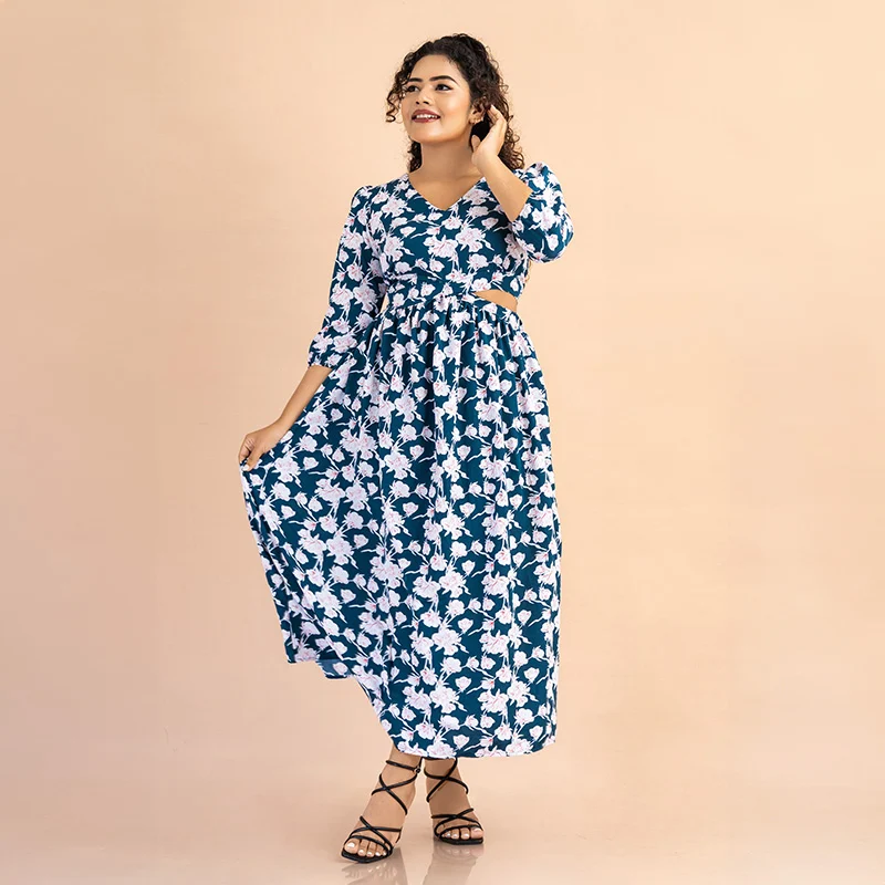 The Lola Maxi Dress effortlessly combines classic femininity with modern comfort. Featuring a modest V-neckline, three-quarter sleeves, and a flowing maxi skirt, it creates a graceful and flattering silhouette. Made from lightweight, breathable Maza fabric, it ensures comfort for all-day wear. Perfect for any occasion, from casual brunches to garden parties or intimate weddings, this versatile dress is a wardrobe essential. Pair it with strappy sandals and delicate jewelry for an effortlessly chic and timeless look.