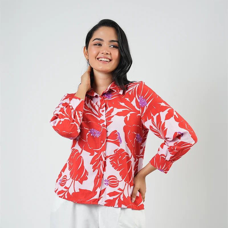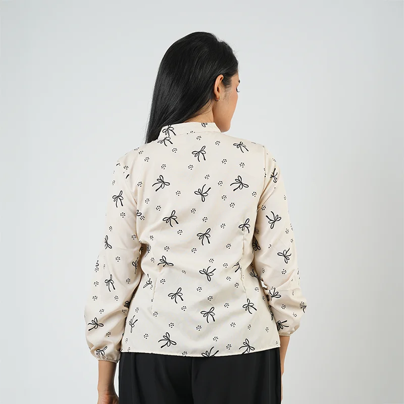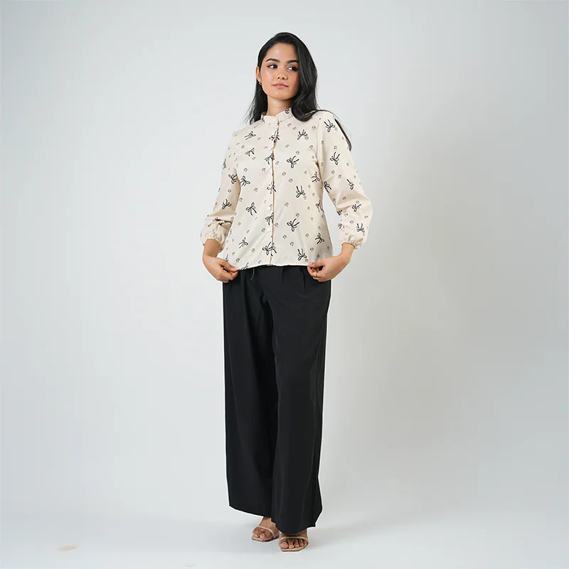 Perfect for office wear, casual brunches, or evening outings, this blouse pairs beautifully with tailored pants, jeans, or skirts. Complete the look with elegant studs and classic heels for a refined, effortless outfit.