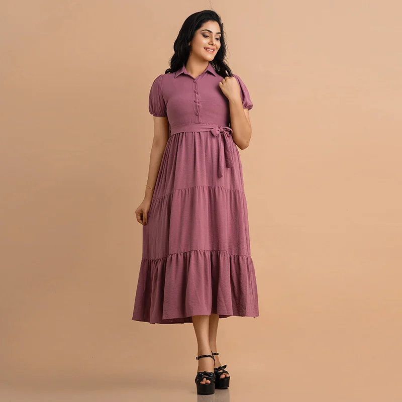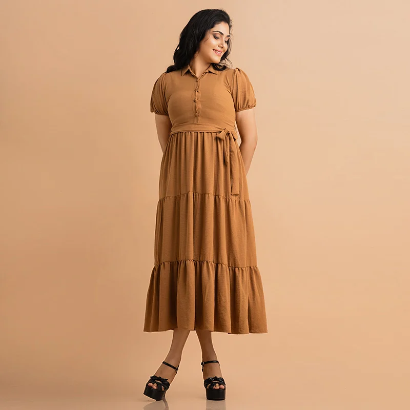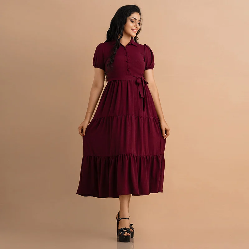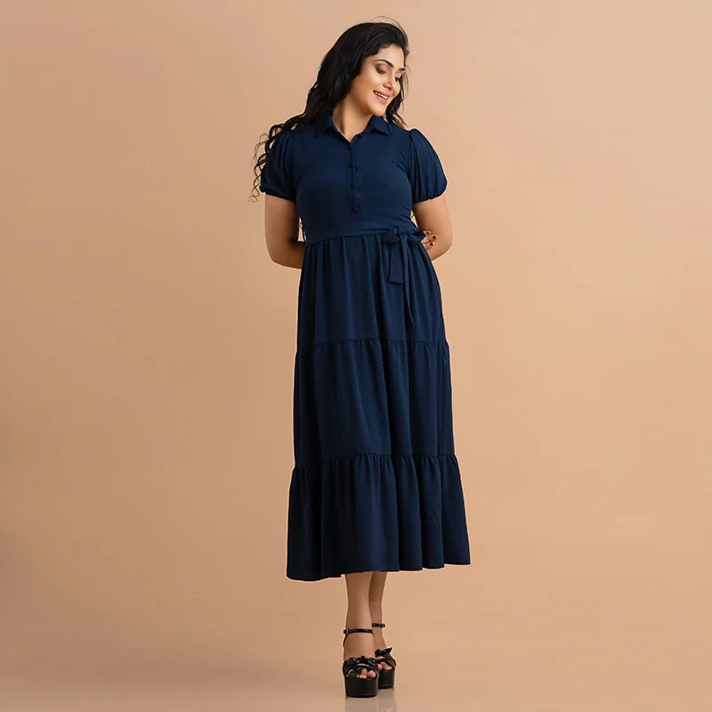 The Monica Maxi Dress combines style and comfort for effortless elegance. Crafted from soft CEY fabric with a two-way stretch, it offers a flattering fit and graceful flow. The dress features a subtle collar, button-down front, puffed sleeves, and a tie waist, creating a perfect blend of relaxed and tailored elements. Ideal for casual outings or evening dinners, this versatile piece pairs beautifully with sandals for day or block heels for a chic night out. Add gold jewelry and a clutch to complete the look.