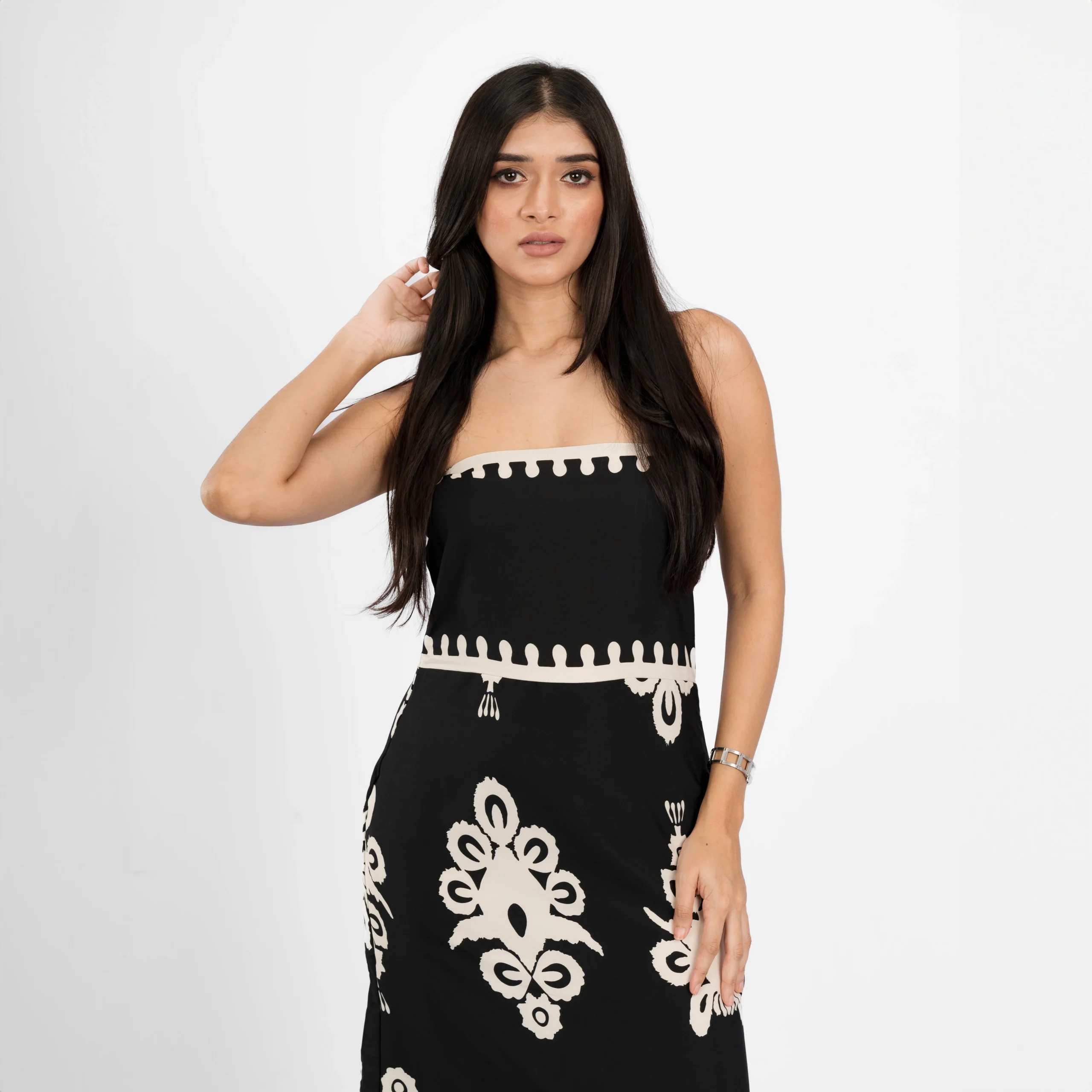 Patterned Bandeau Maxi Dress