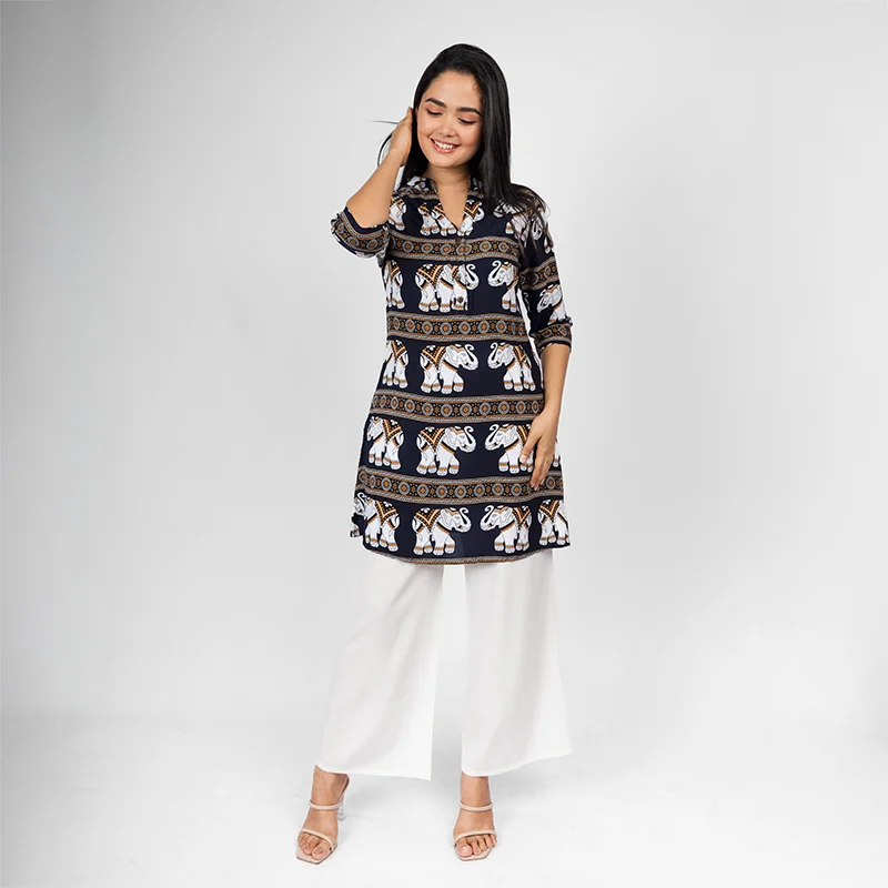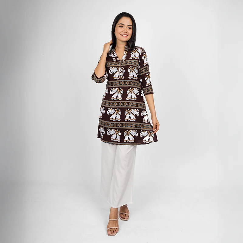 Perfect for casual outings, weekend getaways, or relaxed office days, this tunic pairs effortlessly with trousers, jeans, or palazzos. Style with simple earrings and sandals for an easygoing daytime look, or elevate it with statement jewelry for a touch of sophistication.