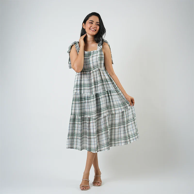 Bask in relaxed elegance with this flowy midi dress that captures the spirit of effortless style. Designed with charming tie-up shoulder straps and a softly gathered tiered skirt, it offers a breezy silhouette that moves gracefully with every step. The flattering square neckline adds a touch of timeless simplicity, perfect for sunny days and carefree outings.