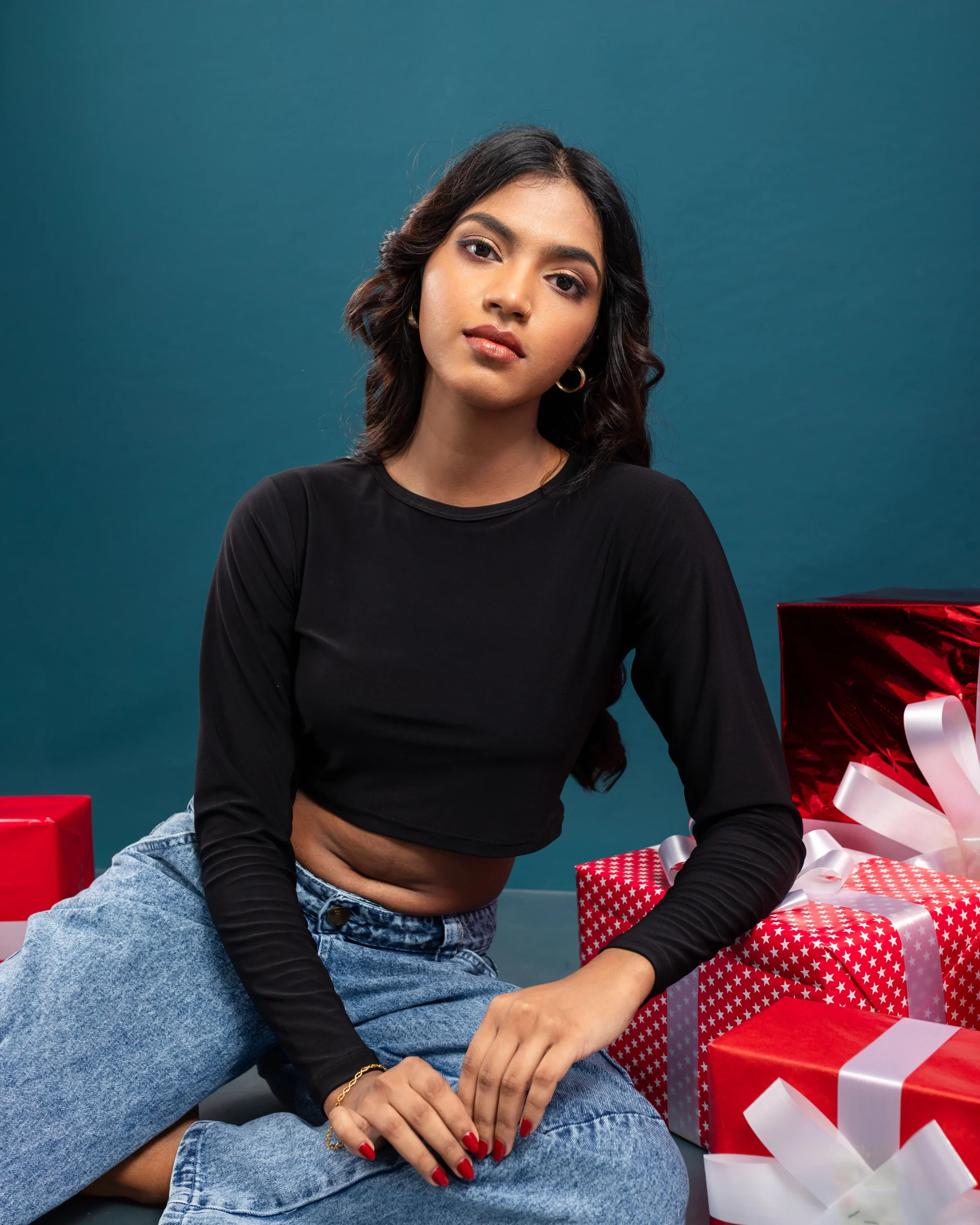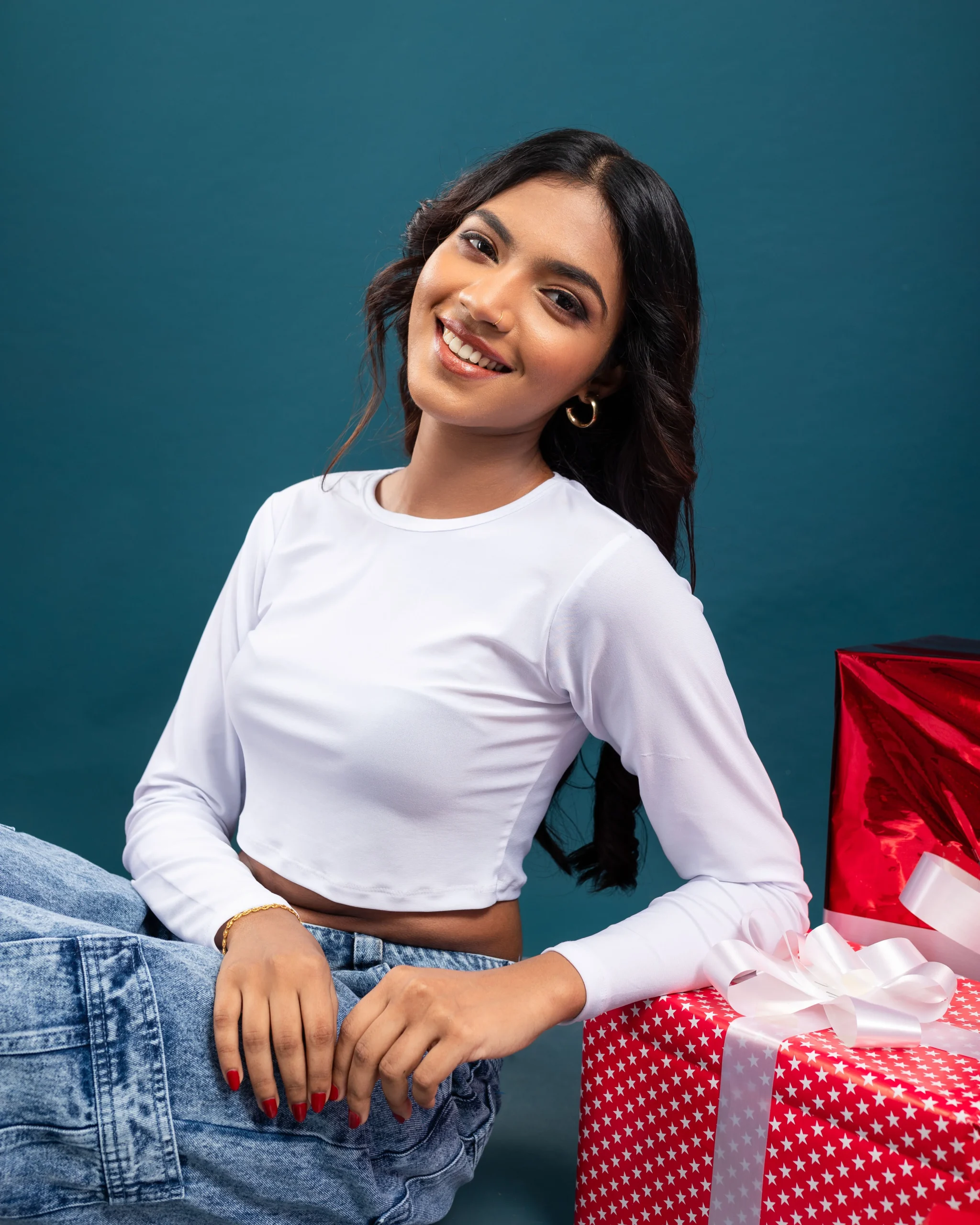 The Sleek Essential Crop Top is a versatile wardrobe staple. With full sleeves and a snug fit, it’s perfect for both casual and semi-formal occasions. Made from stretchable knit fabric, it combines comfort, breathability, and flexibility. Pair it with high-waisted jeans or skirts for a trendy look, or dress it up with tailored trousers and a blazer. Available in sizes UK 8-16, it’s a must-have for effortless style. 🌟