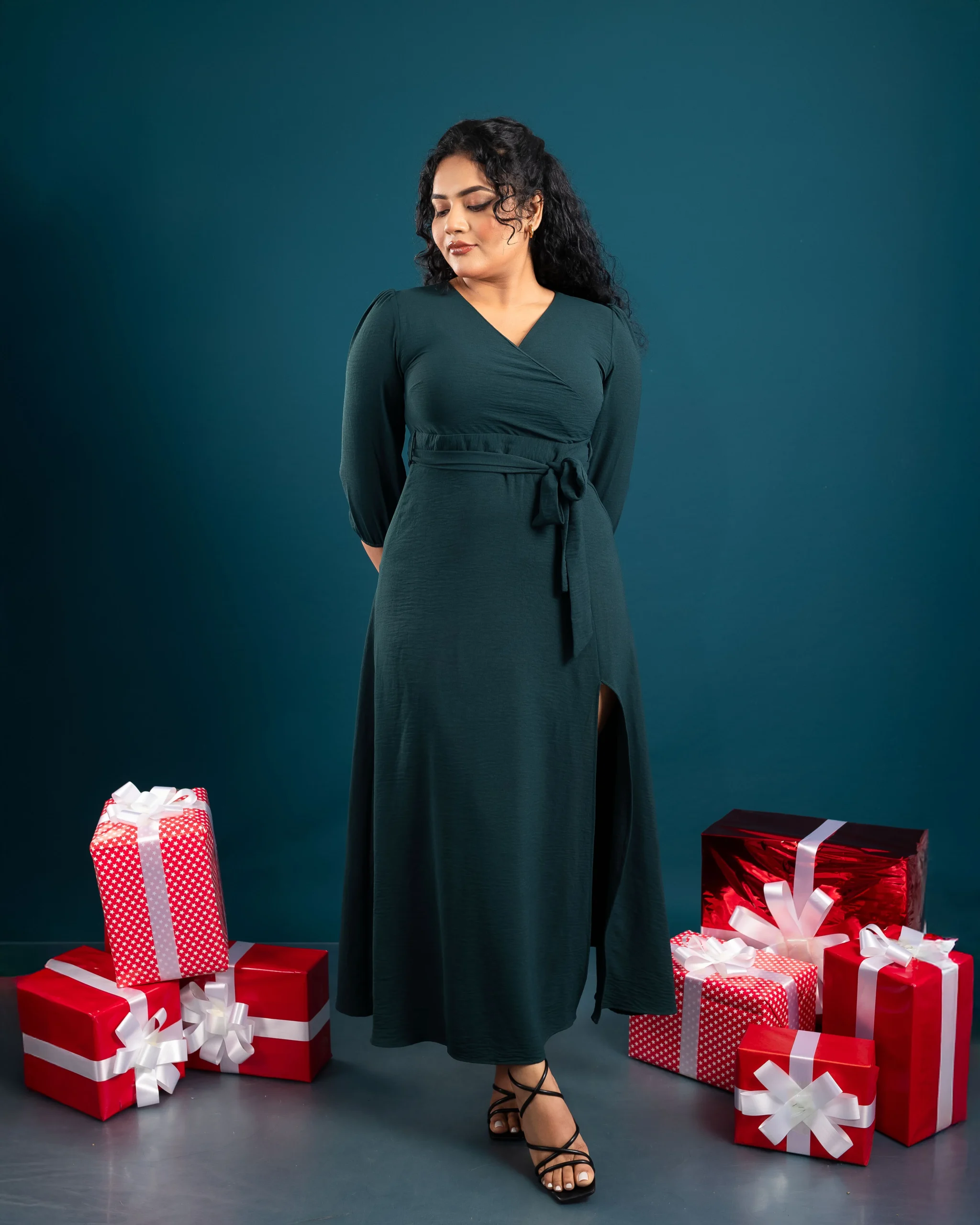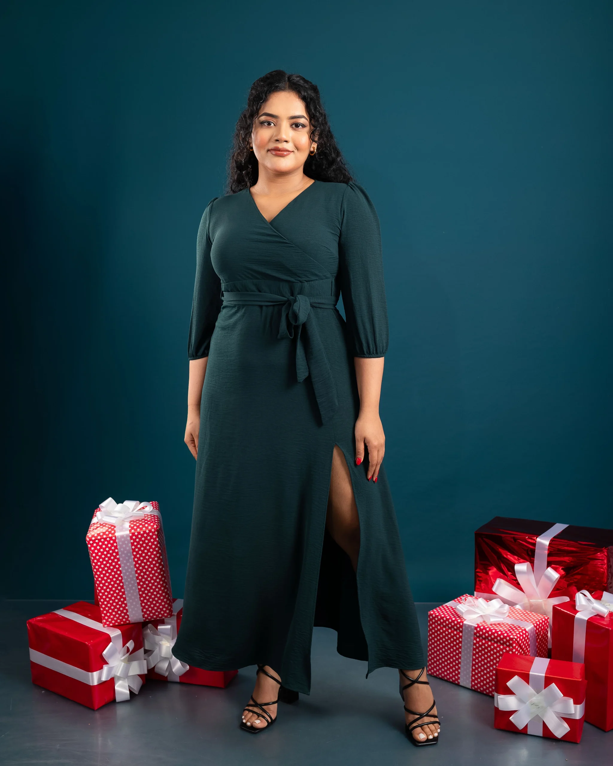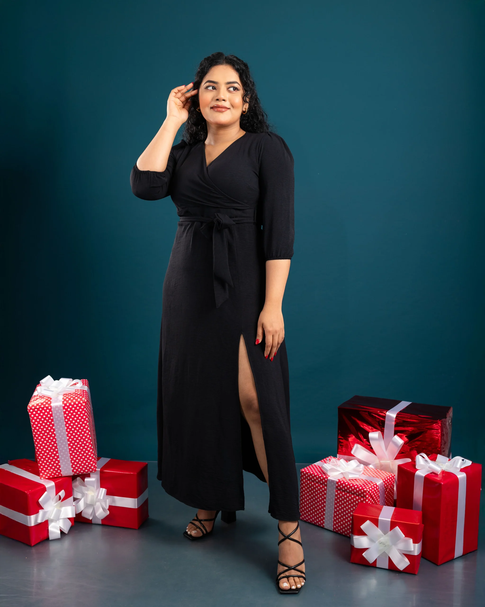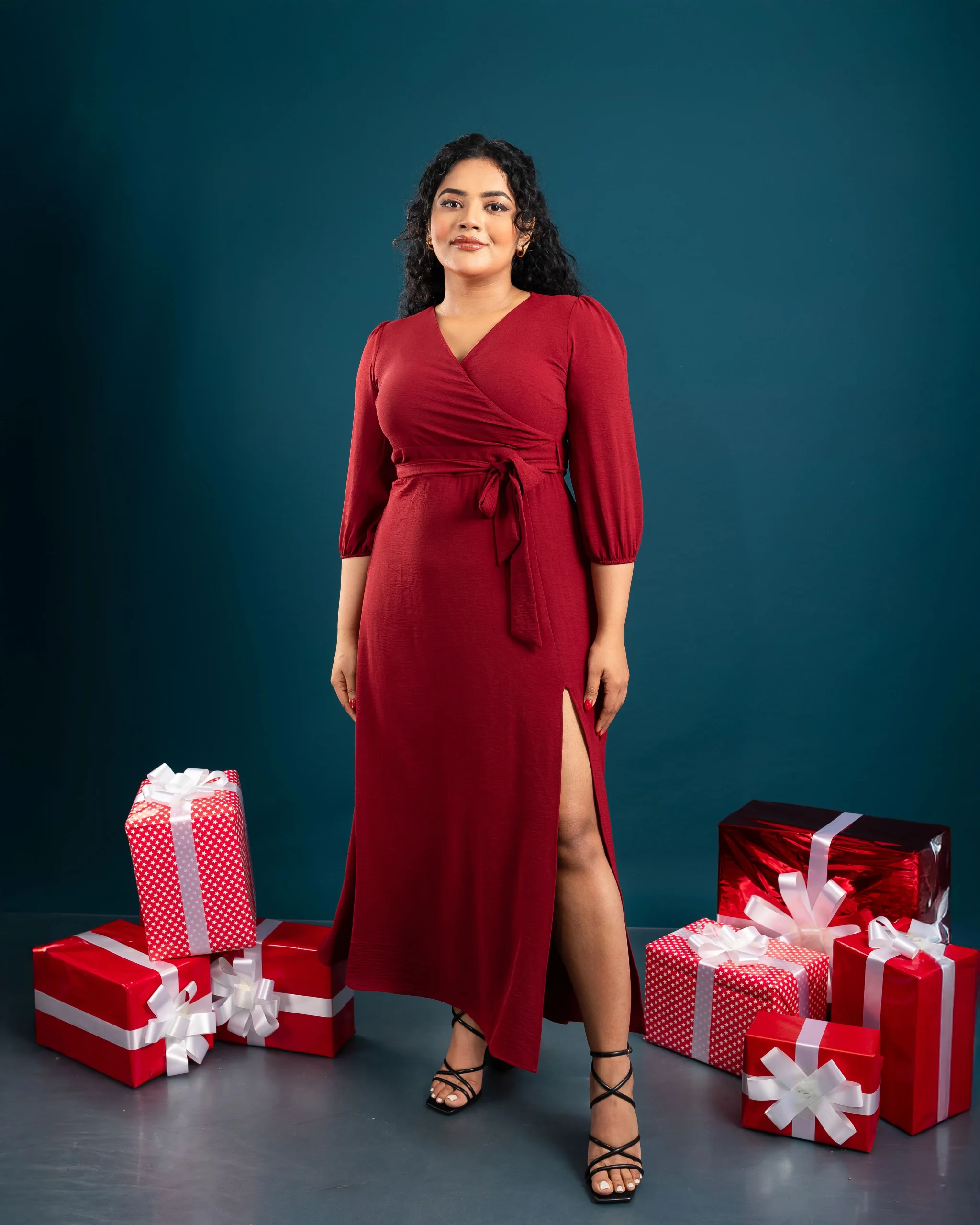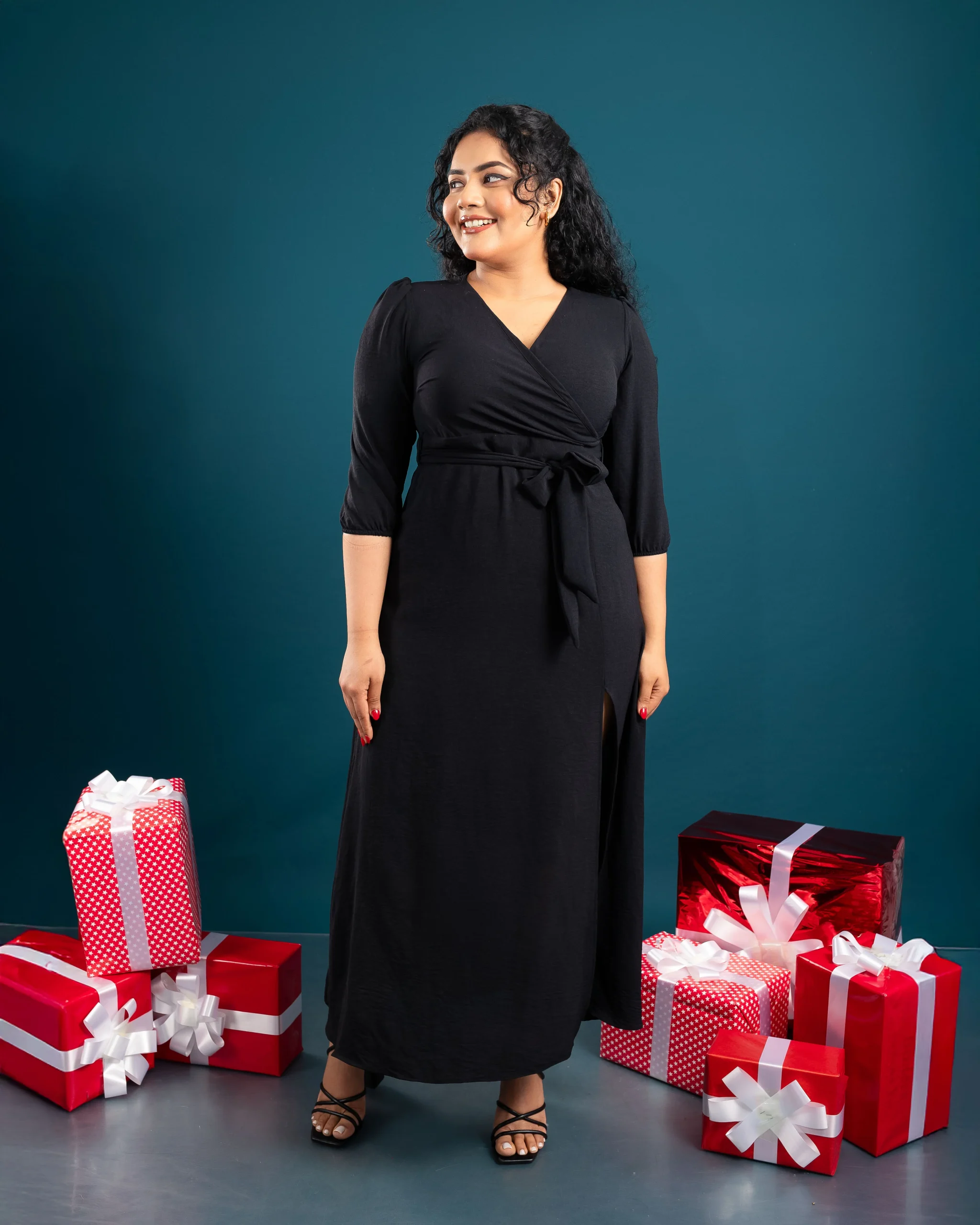 The Velina Wrap Dress combines comfort and elegance with its flattering surplice neckline and adjustable waist tie. Crafted from lightweight Cotton Flex, it offers breathability and a graceful flow. Perfect for family gatherings, dinners, or festive events, this dress ensures effortless chic. Pair it with strappy heels and a delicate necklace for a polished look, or statement earrings and a clutch for a glamorous touch. Available in sizes UK 8-16, it’s a timeless wardrobe staple. 🌟