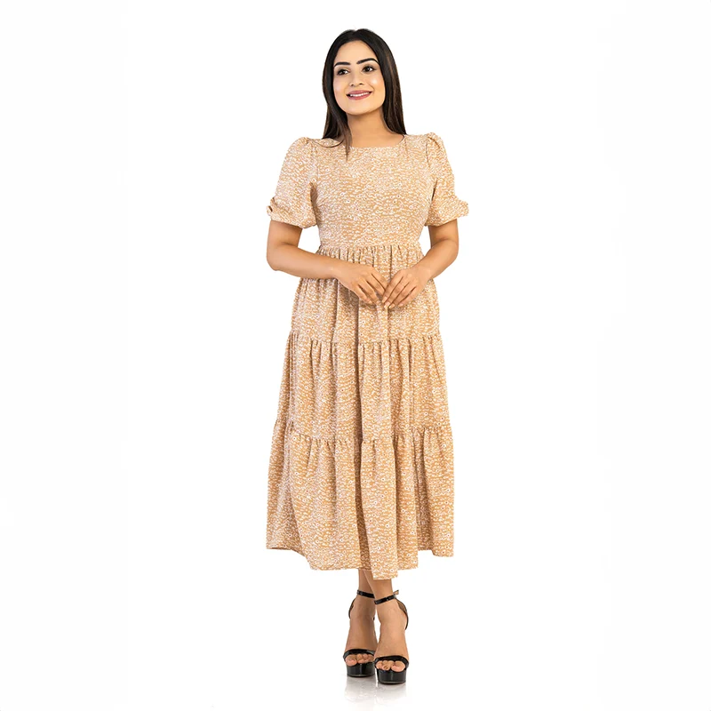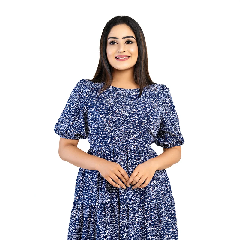 The Zoey Crewneck Maxi Dress combines classic charm with modern sophistication. Featuring a delicate floral print on lightweight chiffon, it offers both comfort and style. The short puff sleeves and round neckline add a touch of romance, while the fitted bodice and flared skirt create a flattering silhouette. Perfect for any occasion, this versatile dress can be dressed up or down. Easy to maintain and machine washable, it’s a timeless addition to your wardrobe. Model wears size UK 12 (L).